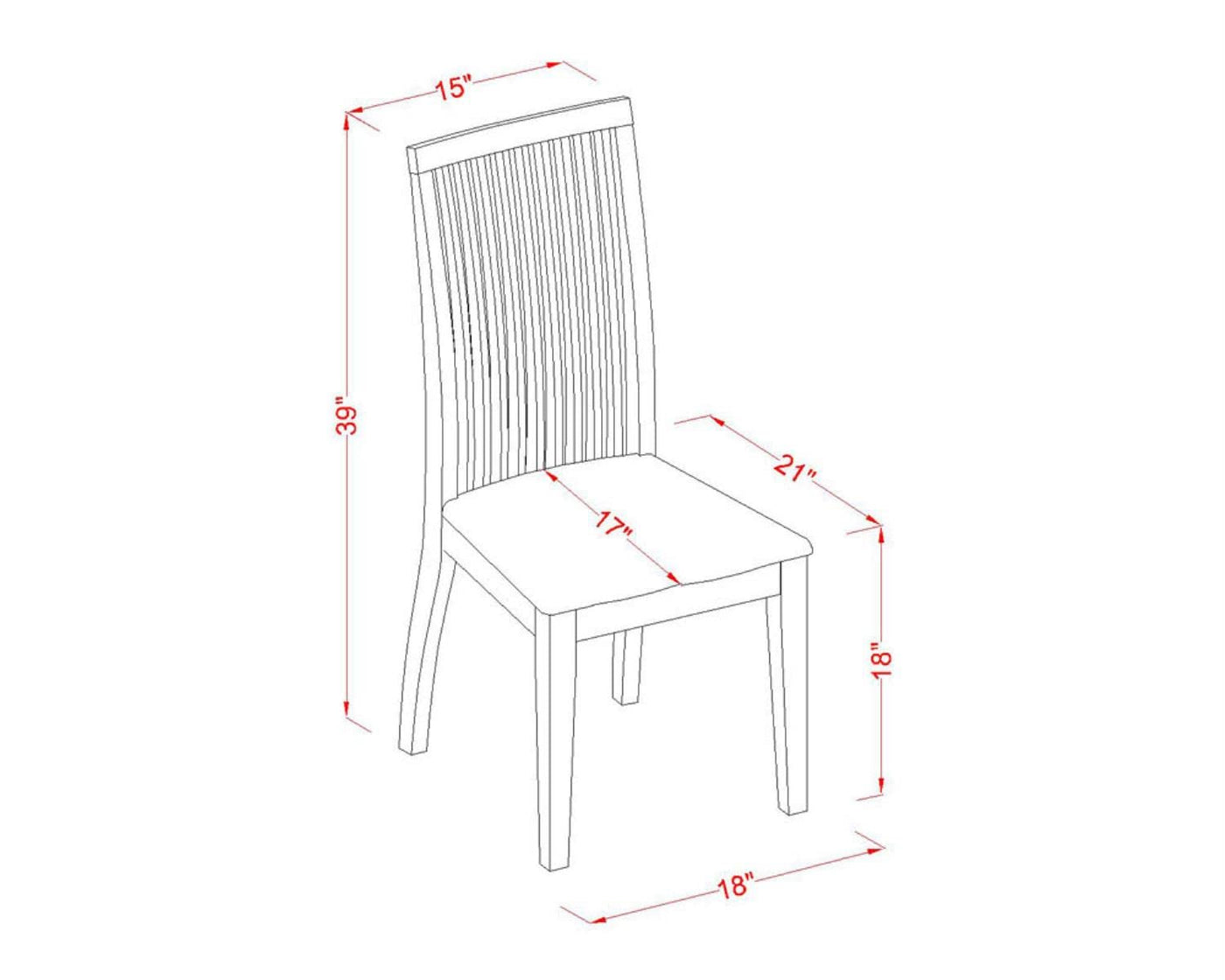 Q: What are the dimensions of the table and chairs in this dining set?A: The dining table measures 42 inches in length and 42 inches in width, with a height of 29.5 inches. The chairs have dimensions of 24.5 inches in length, 19 inches in width, and a height of 40.5 inches.