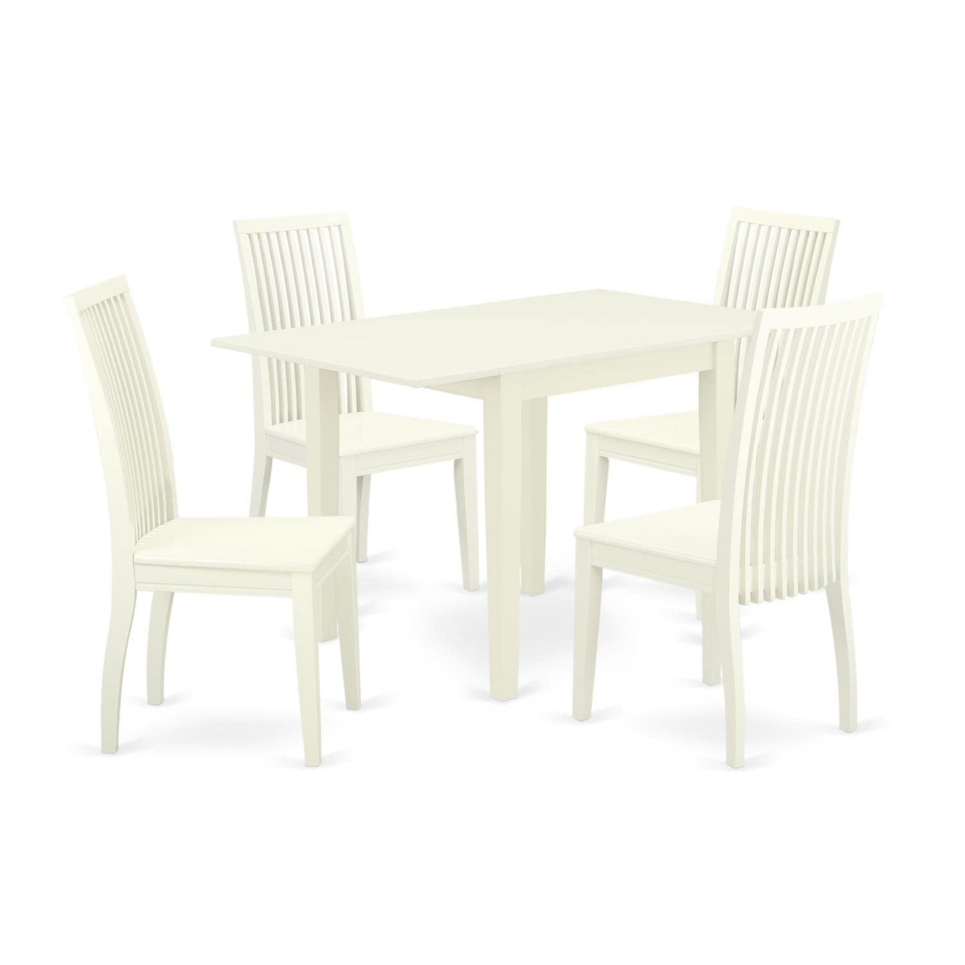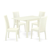 East West Furniture Ndip5-Lwh-W Norden 5 Piece Room Set Includes A Rectangle Dining Table With Dropleaf And 4 Wood Seat Chairs, 30X48 Inch, Linen White