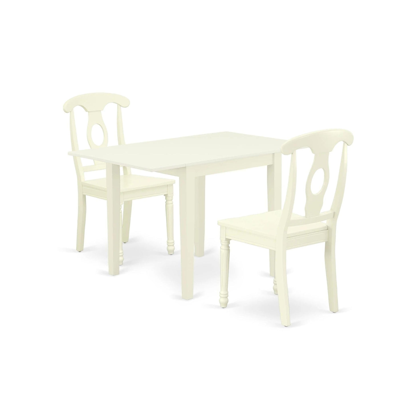 East West Furniture-Ndke3-Lwh-W- 3-Piece Of Kitchen Dining Table Setthis Dining Table Set Is Well Suited For More Compact Places, Eat-In Kitchens, Condos, Or Apartments, This Kitchen Set Is Sure To Make A Statement. Amazing Design And Sleek Appearance Make This Wood Kitchen Table Set A Delightful Addition To Any Kitchen Decor. 3- Piece Wood Dining Table Set, Containing One Rectangular Modern Dining Table And Two Stunning And Fascinating Modern Dining Chairs. Napoleon'S Back Design Of These Dining Room Chairs Offers The Fashion-Forward Vibes Home. The Seat Frame Of This Fashionable Kitchen Chair Is Constructed From Hardwood That Provides Robustness. This Dining Table Set Is Wrapped In A Superior Quality Linen White Finish. The Wood Dining Table And The Frame Of Lovely Contemporary Dining Room Chairs Are Crafted Of High-End Hardwood. This Dining Table Set Provides Wonderful Robustness And Stability, 100% Solid Wood, No Mdf Used. This Kitchen Table Set Is Very Simple And Quick To Assemble And Transport, It Will Take Several Minutes To Set Up This Wood Dinette Set.Product Features: Material: Asian Hardwood Color: Linen White Chair Back: Napoleon Back Table Dimension: Length: 30/48; Width: 30; Height: 30 Chair Dimension: Length: 21; Width: 18; Height: 38.Package Includes: 2 Dining Room Chairs & 1 Dining Room Table