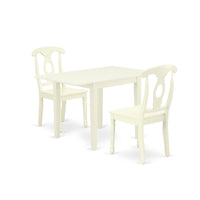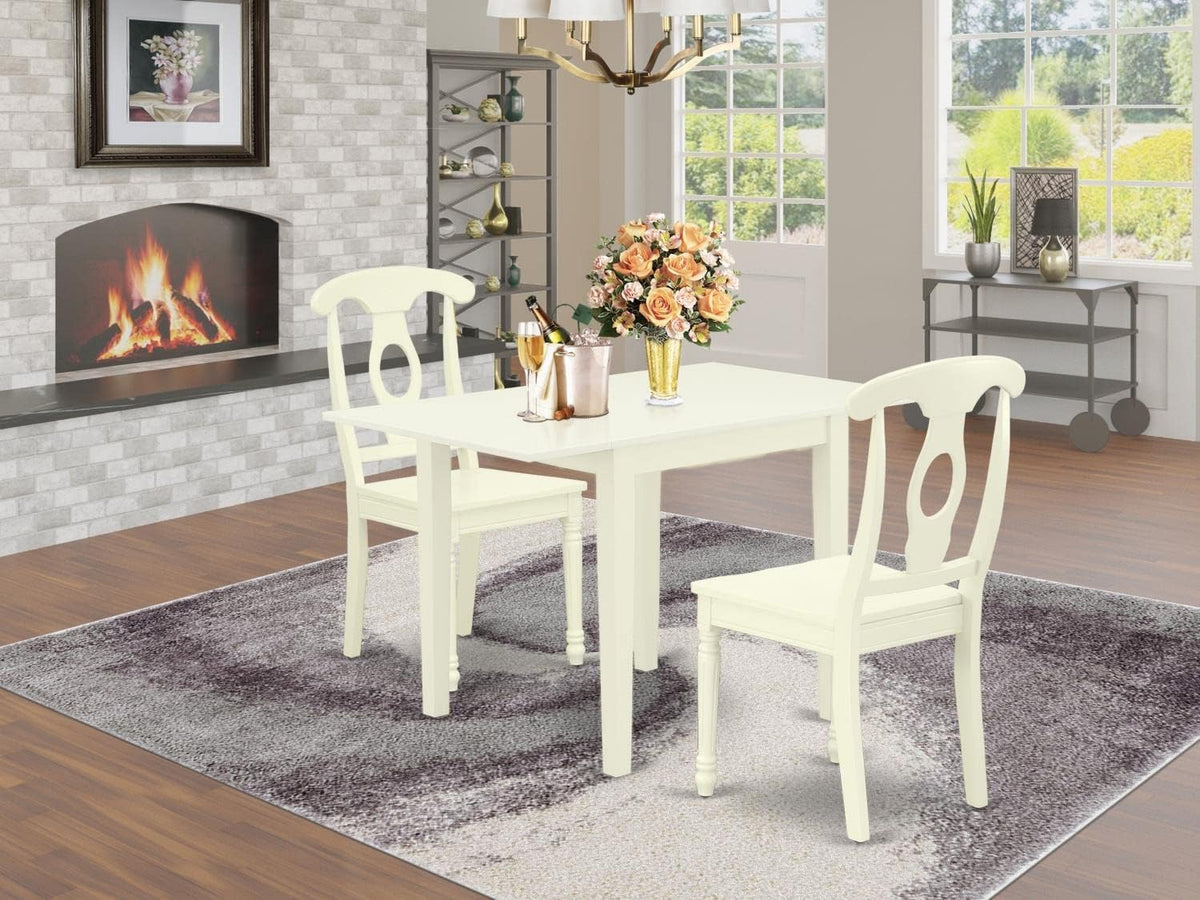 East West Furniture Ndke3-Lwh-W Norden 3 Piece Set For Small Spaces Contains A Rectangle Dining Room Table With Dropleaf And 2 Wooden Seat Chairs, 30X48 Inch, Linen White