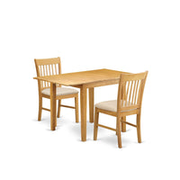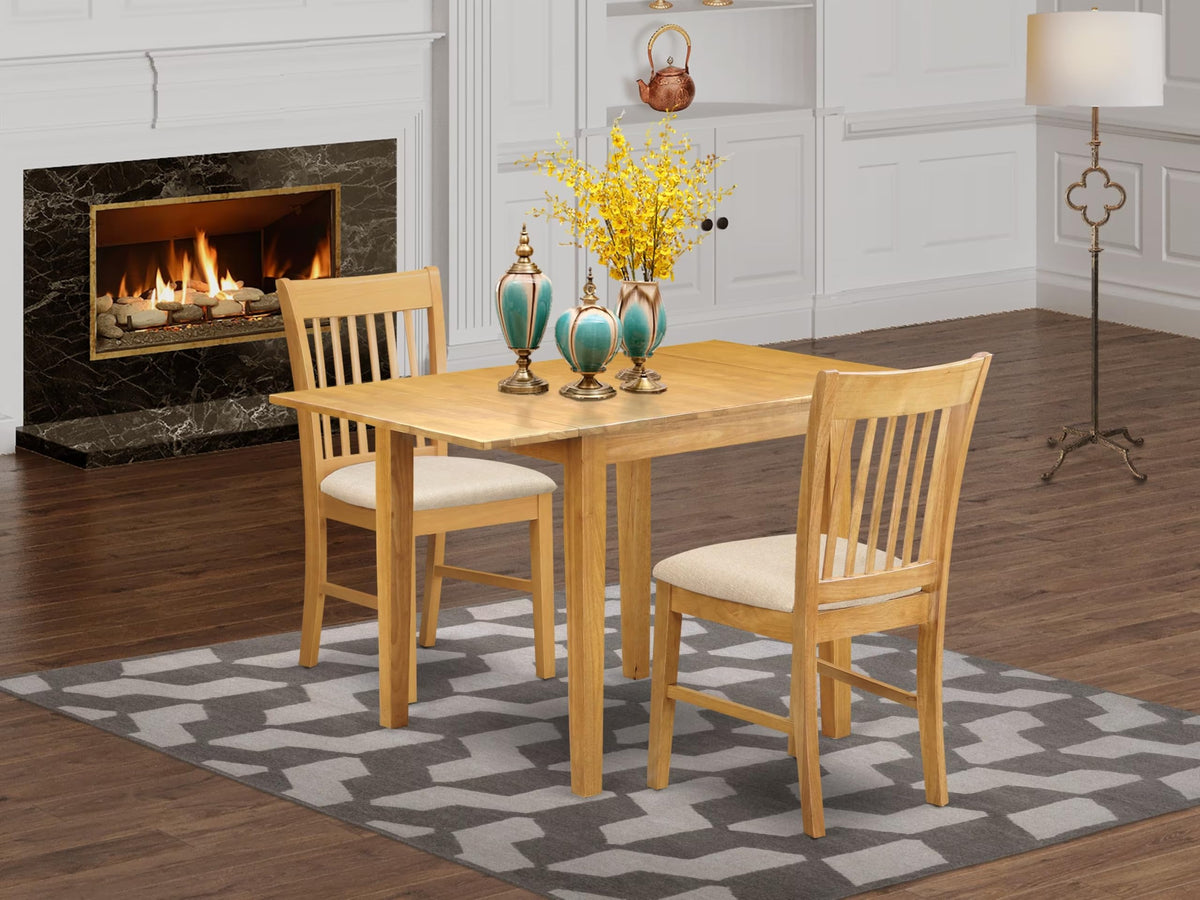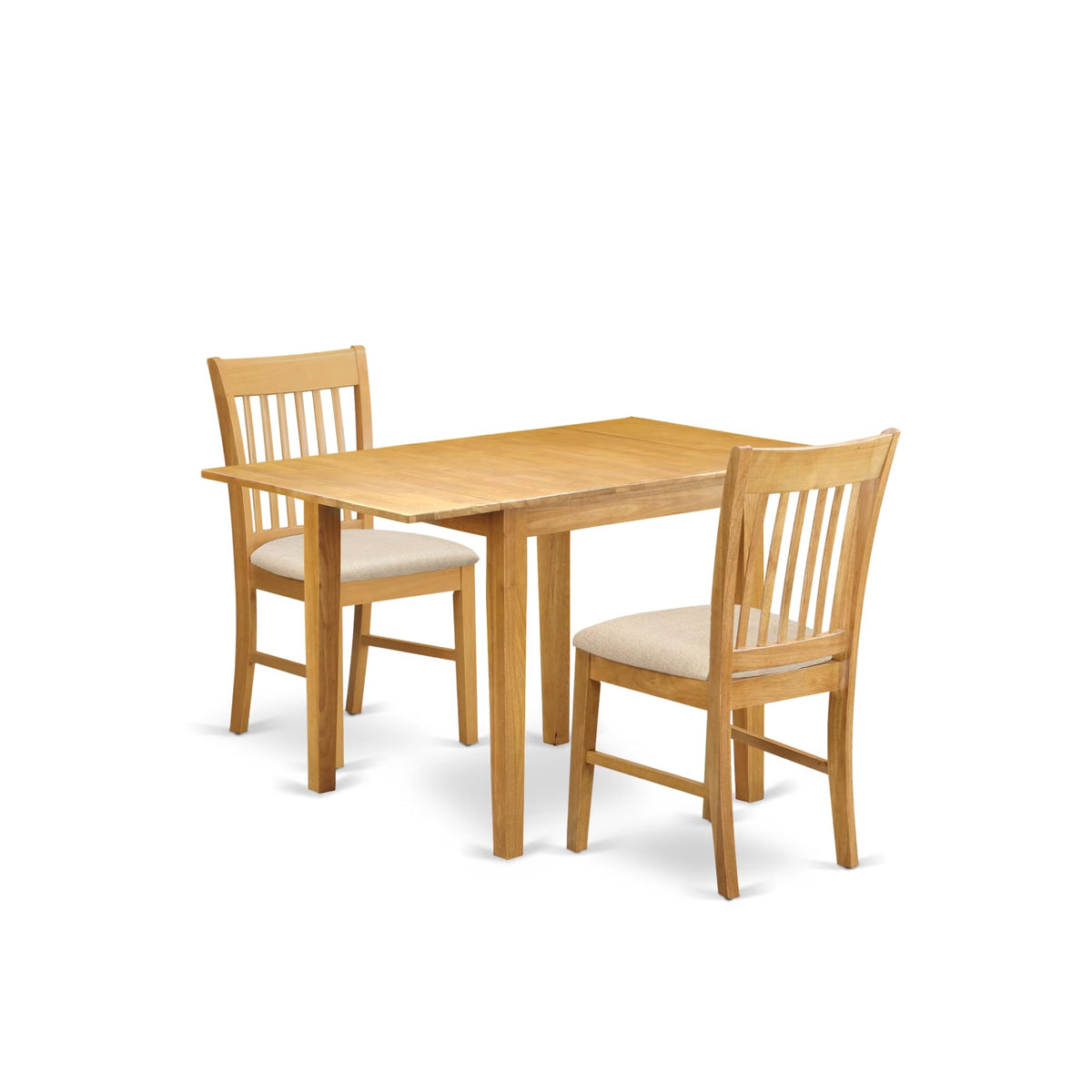 East West Furniture Ndno3-Oak-C 3 Piece Dining Set Contains A Rectangle Dining Room Table With Dropleaf And 2 Linen Fabric Upholstered Kitchen Chairs, 30X48 Inch, Oak