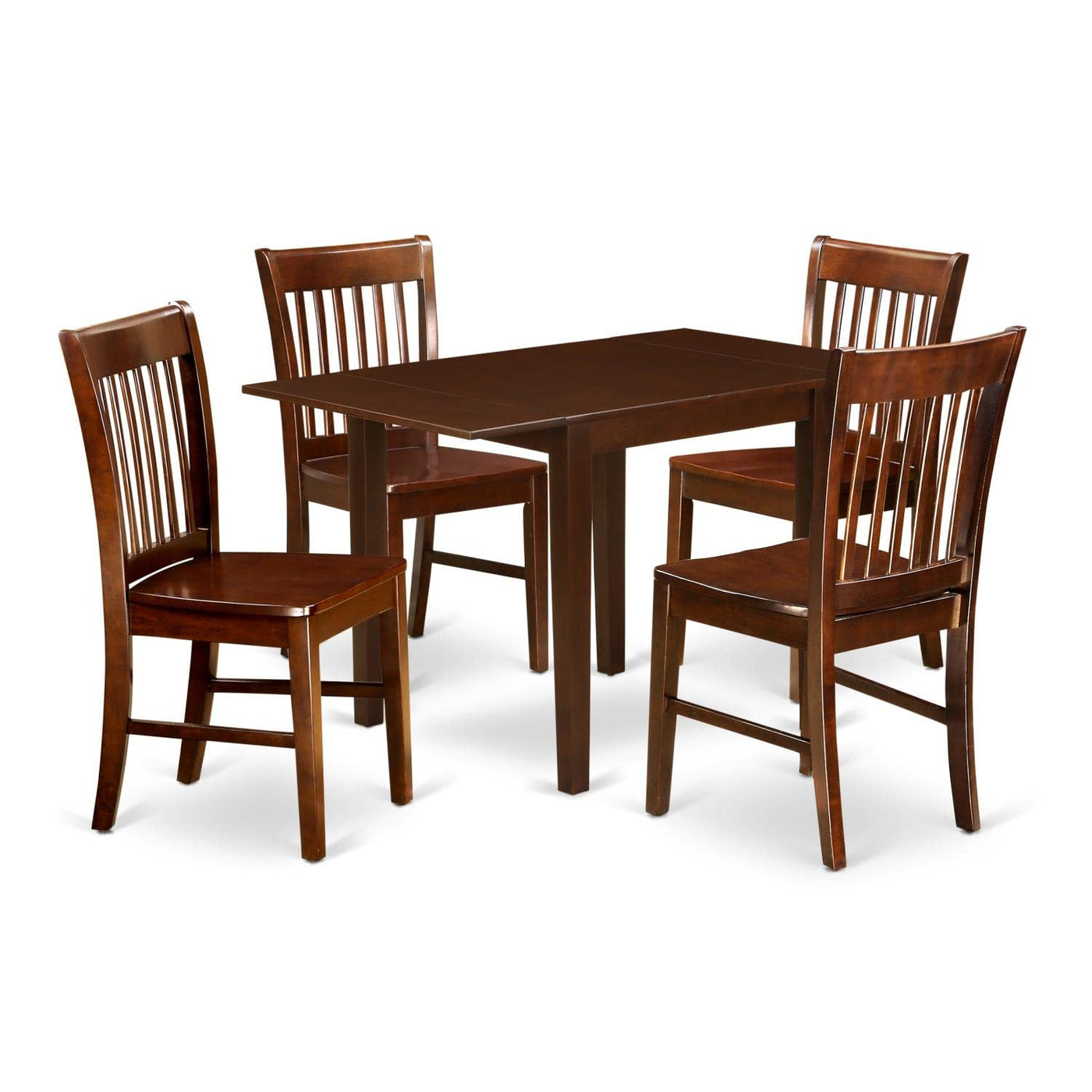 East West Furniture Ndno5-Mah-W 5 Piece Dining Room Table Set Includes A Rectangle Dining Table With Dropleaf And 4 Wood Seat Chairs, 30X48 Inch, Mahogany