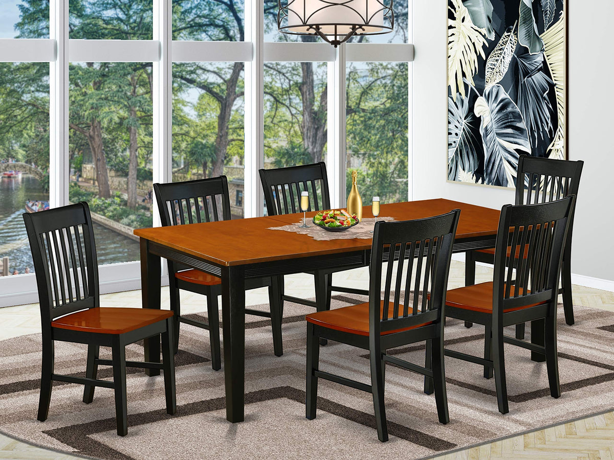 East West Furniture - Quno7-Bch-W - Dining Room Setcomprising 6 Attractive Kitchen Chairs And A Dining Table, This 7-Piece Kitchen Set Enhances Your Dining Room'S Allure. By Incorporating These Kitchen Chairs And A Dining Table, You Can Bring A Modern Flair To Your Kitchen With A Glossy Appearance. The Dining Table Features A Durable Cherry Tabletop And Seamless Black Finish, Offering Timeless Appeal That Complements Various Decor Styles. The Mid-Century Chairs With Black-Finished Wooden Legs Provide Comfort And Modern Elegance. The Extendable Leaf Easily Expands The Table For Personal Occasions Or Parties. Crafted From Prime Quality Rubber Wood, This Kitchen Table Is Both Durable And Elegant. The Norfolk Dining Room Chair Adds Exquisite, Modern Style With Its Solid Wood Top, Wooden Seats, And Comfortable Backrest. The Sleek Wooden Seat Ensures Customer Comfort. This Budget-Friendly, Durable, And Comfortable Dining Set Enhances The Dining Experience For Family And Friends.Product Features: Material: Asian Hardwood Color: Black And Cherry Table Dimensions: Length: 78/60; Width: 40; Height: 30. Chair Dimensions: Length: 19; Width: 18; Height: 35. Weight Capacity: 300 Lbsincludes: A Rectangular Table And 6 Wooden Chairshardware Package And Instruction Manual Are Located In/Under The Seat.