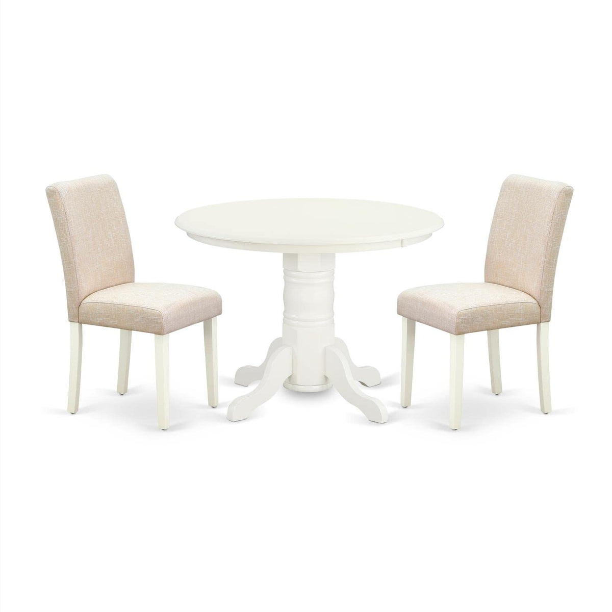East West Furniture Shab3-Lwh-02 3 Piece Dining Table Set Contains A Round Dining Room Table With Pedestal And 2 Light Beige Linen Fabric Parsons Dinette Chairs, 42X42 Inch, Linen White