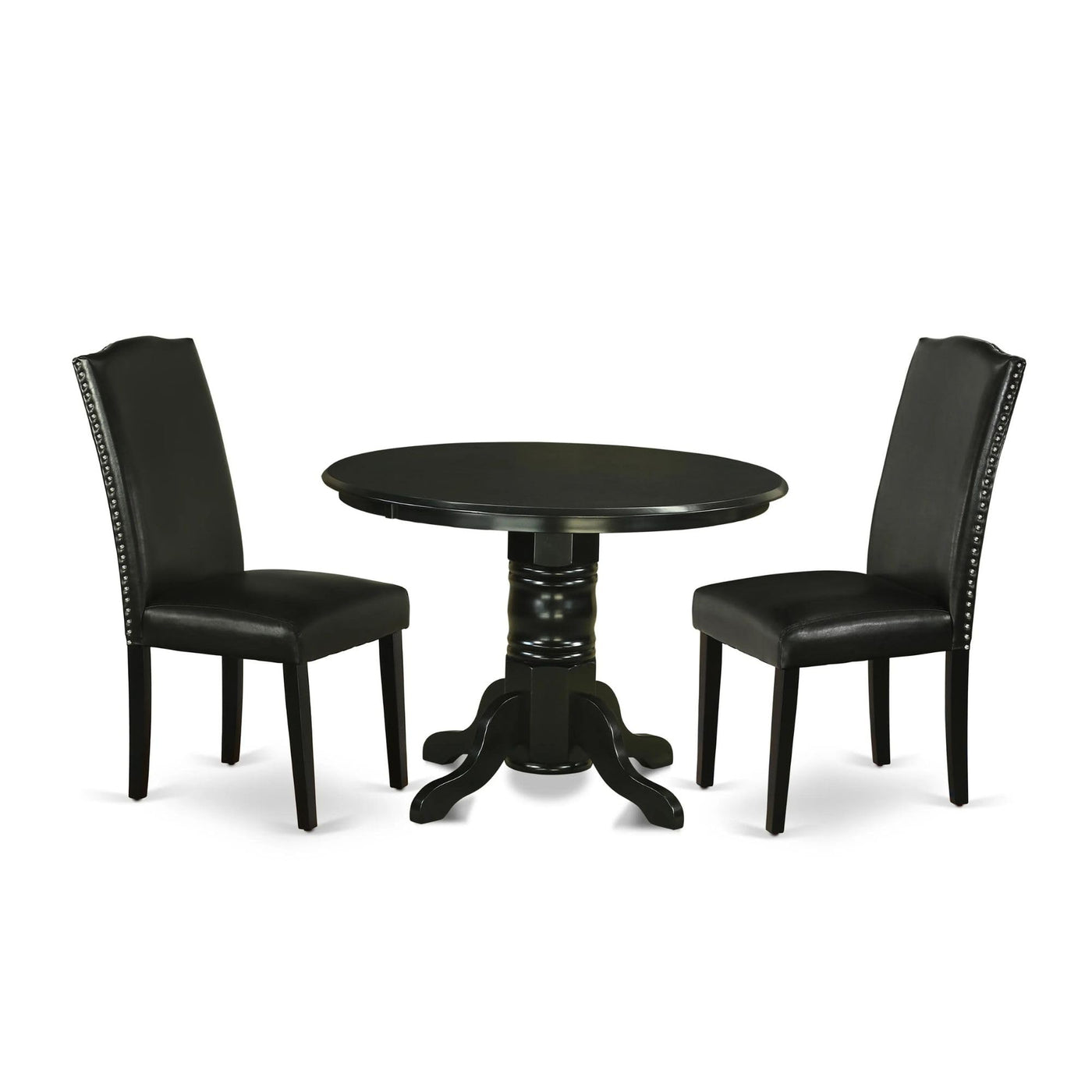 East West Furniture Shen3-Blk-69 3 Piece Kitchen Table Set Contains A Round Dining Table With Pedestal And 2 Black Faux Leather Parson Dining Room Chairs, 42X42 Inch, Black