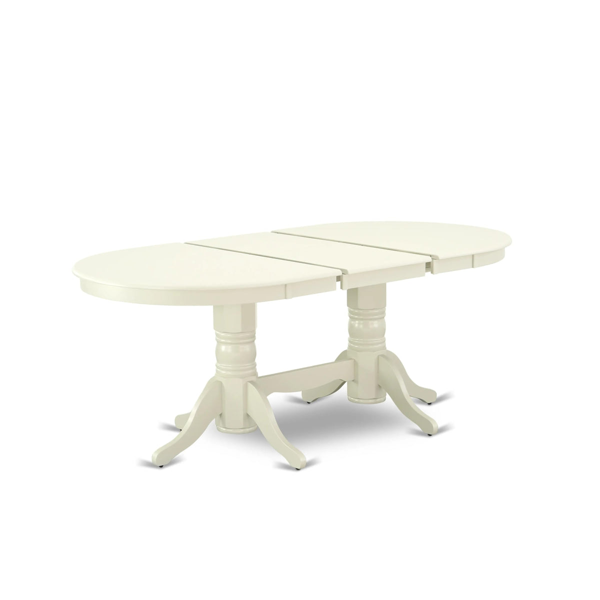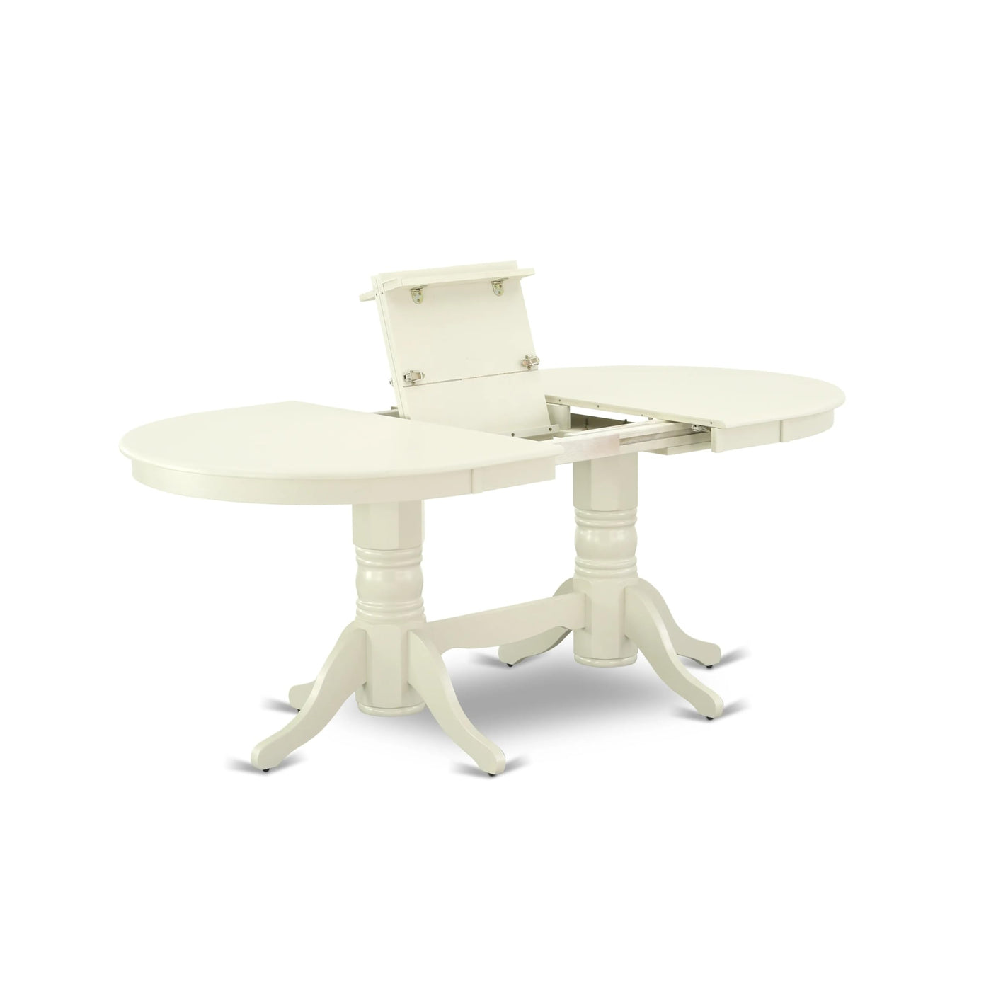 East West Furniture - Vaab5-Lwh-02 - Kitchen Table Setthe 5-Piece Kitchen Table Set Includes A Dining Table With A Butterfly Leaf Mechanism And 4 Meticulously Crafted Dining Chairs. This Oval Double Pedestal Dining Room Set Elevates The Sophistication Of Your Dining Or Kitchen Area, With A Contemporary Design Suitable For Various Spaces. The Kitchen Table Features A Linen White Tabletop And Matching Legs, Complemented By Parson Chairs With Light Beige Linen Fabric Seats And Legs. This Meticulously Designed Set Offers A Premium Color Combination For A Sophisticated Home Aesthetic. Crafted From Premium Asian Rubber Wood Known For Durability, And Assembled By Experienced Carpenters, It Adds A Touch Of Luxurious Elegance To Any Dining Room. The Mid-Century Dining Chair With A Linen Fabric Seat And Supportive Backrest Exudes Modern Sophistication, Seamlessly Complementing Different Decor Styles. The Dining Table Is Constructed From Top-Quality Wood, Ensuring Long-Lasting Use. This Elegant, Sturdy, And Comfortable Dining Set Is Ideal For Creating Memorable Dining Experiences With Family And Friends, Combining Style And Functionality In A Professional Manner.Product Features: Material: Asian Hardwood Table Color: Linen White Fabric: Linen Fabric Cushion Material: Foam Fabric Color: Light Beige Chair Leg Color: Linen White Chair Dimensions: Length: 22; Width: 17.20; Height: 35.20. Table Dimensions: Length: 76.3/59; Width: 40; Height: 30. Weight Capacity: 300 Lbsincludes: An Oval Table And 4 Parson Chairs.Hardware Package And Instruction Manual Are Located In/Under The Seat.