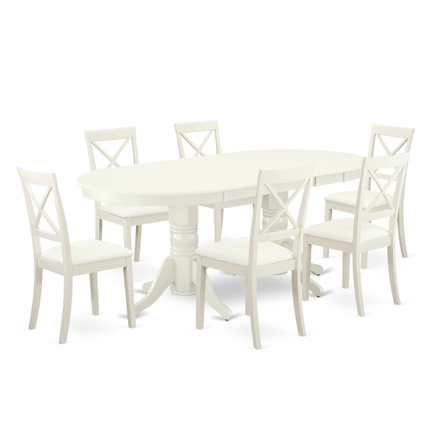 East West Furniture Vabo7-Lwh-Lc 7 Piece Dining Table Set Consist Of An Oval Dinner Table With Butterfly Leaf And 6 Faux Leather Dining Room Chairs, 40X76 Inch, Linen White
