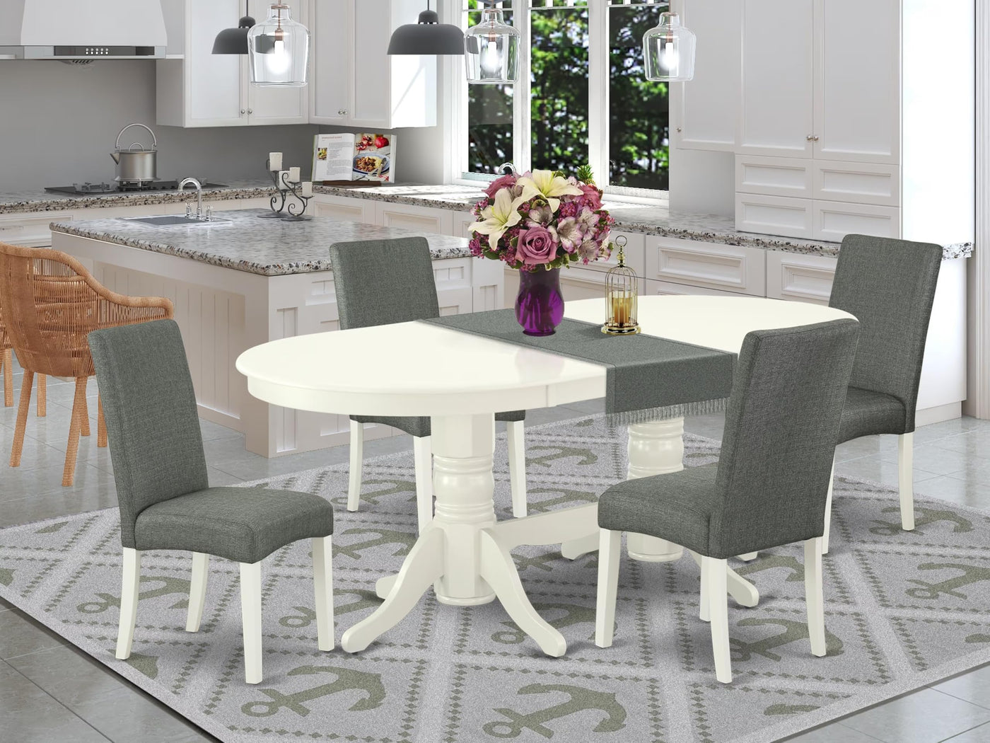 East West Furniture Vadr5-Lwh-07 5 Piece Dinette Set Includes An Oval Dining Room Table With Butterfly Leaf And 4 Gray Linen Fabric Upholstered Parson Chairs, 40X76 Inch, Linen White