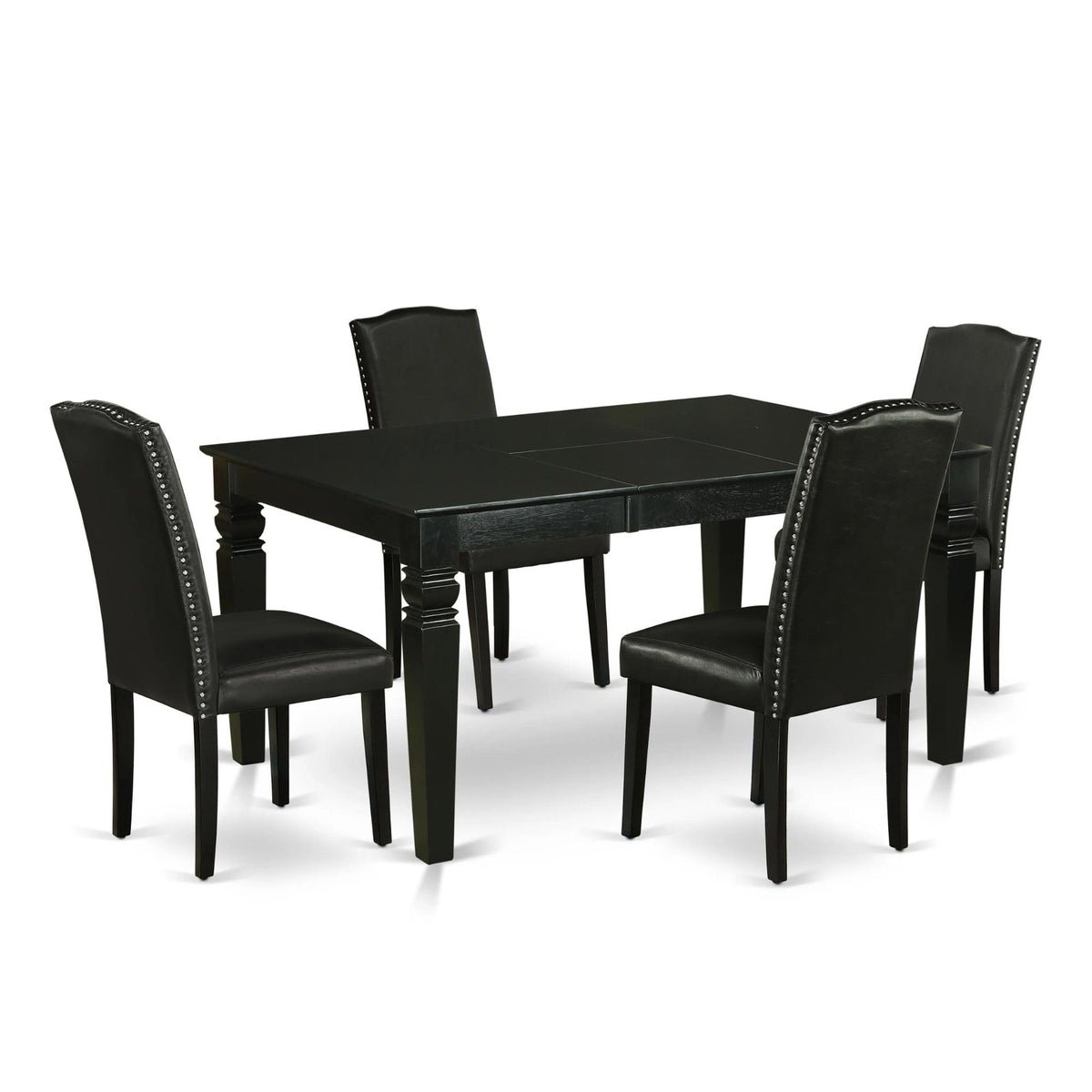 East West Furniture - Ween5-Blk-69 - 5-Piece Kitchen Table Setthis Dinner Table Is Beautifully Matched With A Set Of 4 Elegant Dining Room Chairs, Elevating Its Overall Charm. This 5-Piece Kitchen Table Set Introduces A Contemporary Design With A Sleek Table That Effortlessly Complements A Variety Of Room Decor Styles. The Breakfast Table Showcases A Black Tabletop And Legs, Both Elegantly Finished In A Black Hue. The Upholstered Dining Chairs Feature Black Pu Leather Seats And Wooden Legs, Also Finished In A Matching Black Shade. This Dining Set Combines Premium Finishes, Providing A Luxurious And Sophisticated Appearance Suitable For Any Home. Crafted From Rubberwood, An Asian Wood Renowned For Its Exceptional Durability Due To Its Dense Grain, This Kitchen Table Set Not Only Embraces Environmental Friendliness But Also Possesses Remarkable Shock-Absorbing Properties. Designed To Withstand The Test Of Time, It Avoids The Use Of Heat-Treated Wood, Plywood, Veneer, Or Laminated Materials In Its Construction. Our Contemporary Dining Chairs Showcase Faux Leather Seats And Stylish Chair Backs, Enhancing The Overall Elegance Of The Kitchen. The Generously Sized Seats Ensure Optimal Comfort, Making These Kitchen Chairs Seamlessly Blend With Diverse Design Aesthetics And Complement Various Decor Styles.Product Features: Material: Asian Hardwood Frame Color: Black Fabric: Pu Leather Fabric Color: Black Cushion Material: Foam Table Dimensions: Length: 60/42; Width: 42; Height: 30. Chair Dimensions: Length: 24.5; Width: 19; Height: 40.5. Weight Capacity: 300 Lbs.Includes: A Rectangular Table And 4 Parson Chairsthe Hardware Package And Instruction Manual Are Located In/Under The Seat.