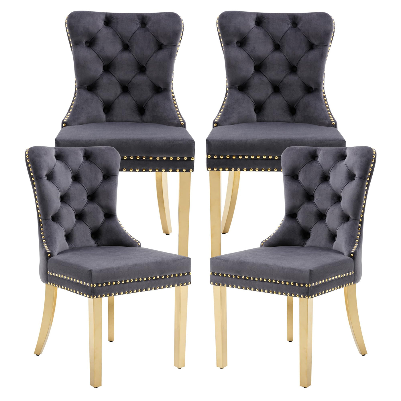Goolon Dining Room Chairs Set Of 4, Tufted Velvet Chairs With Golden Stainless Legs, Rivet Trim Metal Pull Ring Large Back For K