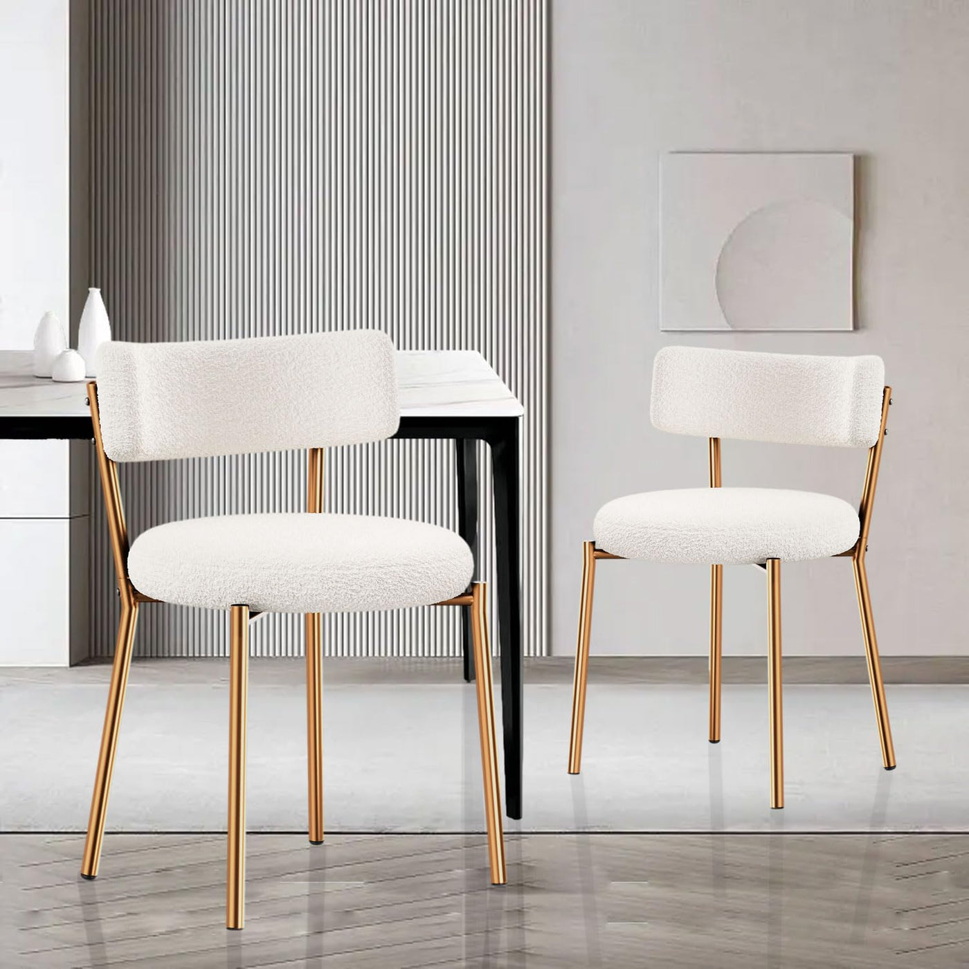 Modern Dining Chairs Set Of 2 Upholstered Accent Chairs With Metal Legs Side Chairs Vanity Chair For Dining Room Kitchen Living Room Product Features: The Upholstered Chair For Living Room Is Made With A Soft Velvet Fabric That Provides A Cozy And Comfortable Seating Experience. The Golden Metal Legs Can Support Up To 300 Lbs Of Weight. Products Information: Seat Material: Boucle Frame Material: Metal Legs: Golden Metal Legs Weight Capacity: 300Lbs Seat Height: 16.9' Inches Product Dimensions: 28.7'L X 22.2'W X 29.5'H Assembly Instructions And Assemble Tools Are Included, And Easy To Install. Most People Can Do It In 10-15 Minutes.
