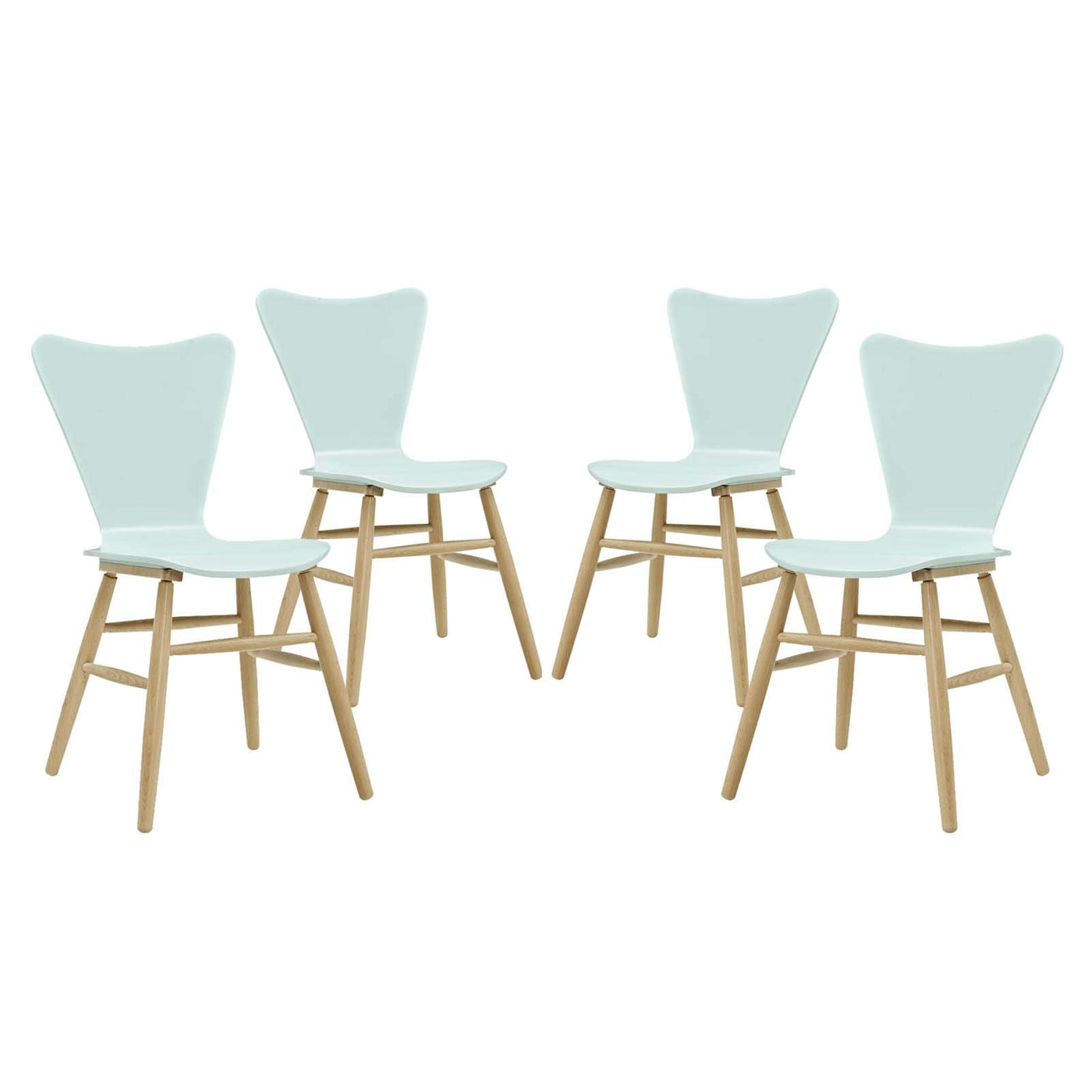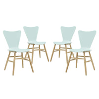 Modway Cascade Mid-Century Modern Wood Four Kitchen And Dining Room Chairs In Light Blue