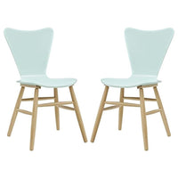 Modway Cascade Mid-Century Modern Wood Two Kitchen And Dining Room Chairs In Light Blue