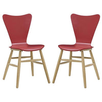 Modway Cascade Mid-Century Modern Wood Two Kitchen And Dining Room Chairs In Red