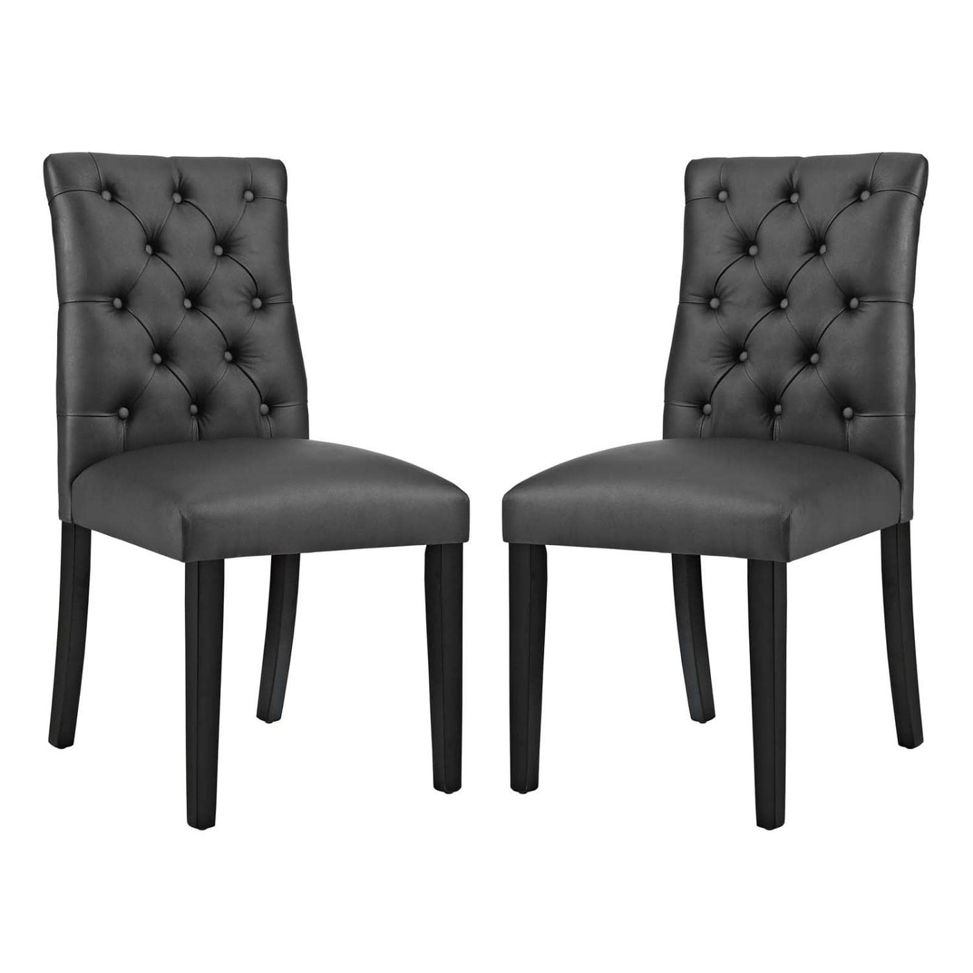 Modway Duchess Modern Tufted Button Faux Leather Upholstered Parsons Two Dining Chairs In Black