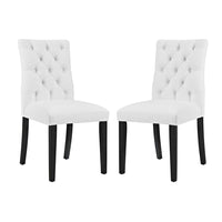 Modway Duchess Modern Tufted Button Faux Leather Upholstered Parsons Two Dining Chairs In White