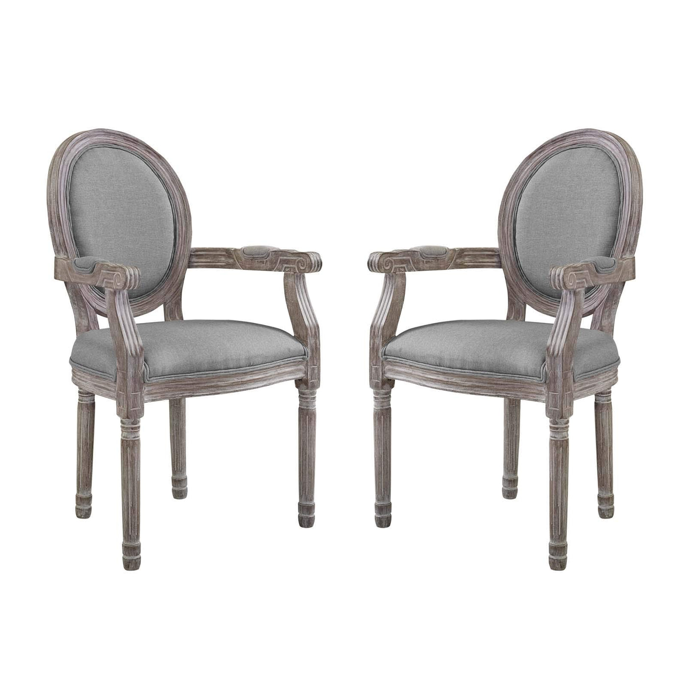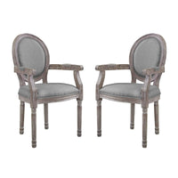 Modway Emanate French Vintage Upholstered Fabric Two Dining Armchairs In Light Gray
