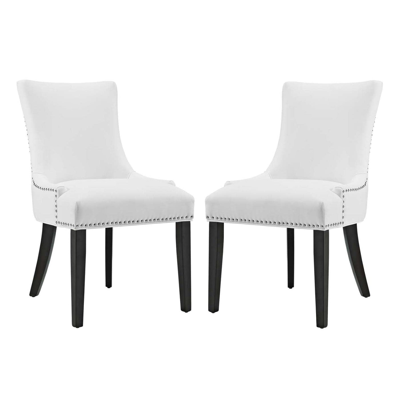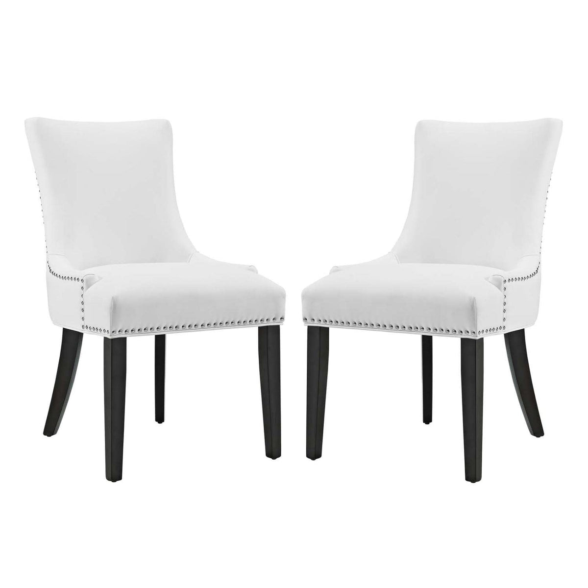 Modway Marquis Modern Faux Leather Upholstered Two Dining Chairs With Nailhead Trim In White