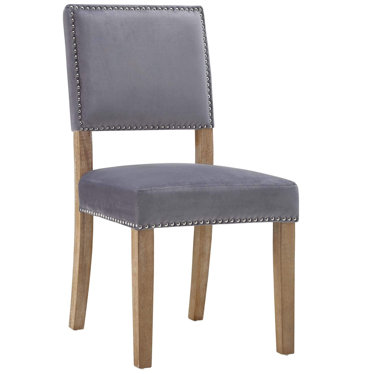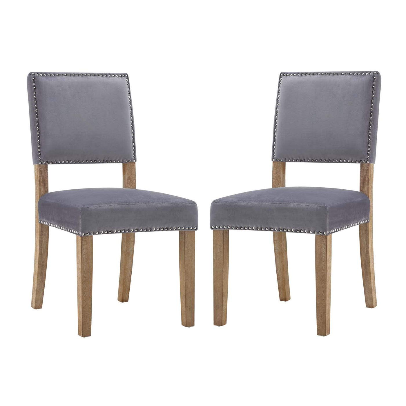 Modway Oblige Modern Performance Velvet Upholstered Two Dining Chairs With Nailhead Trim In Gray