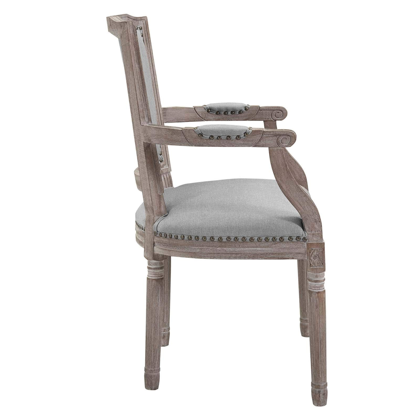 Revel In The Whispered Opulence Of The Penchant Dining Armchair. Featuring A Fluted Wood Frame, Dense Foam Upholstered Fabric Seat And Armrests, And Antique Copper Nailhead Trim, This Dining Or Accent Chair Elegantly Blends Old World Charm With Modern Intrigue. Designed With A Weathered Vintage French Look And An Undeniable Appeal, Penchant Supports Up To 331 Pounds And Comes With Foot Pads To Preserve Flooring. Comes Fully Assembled.