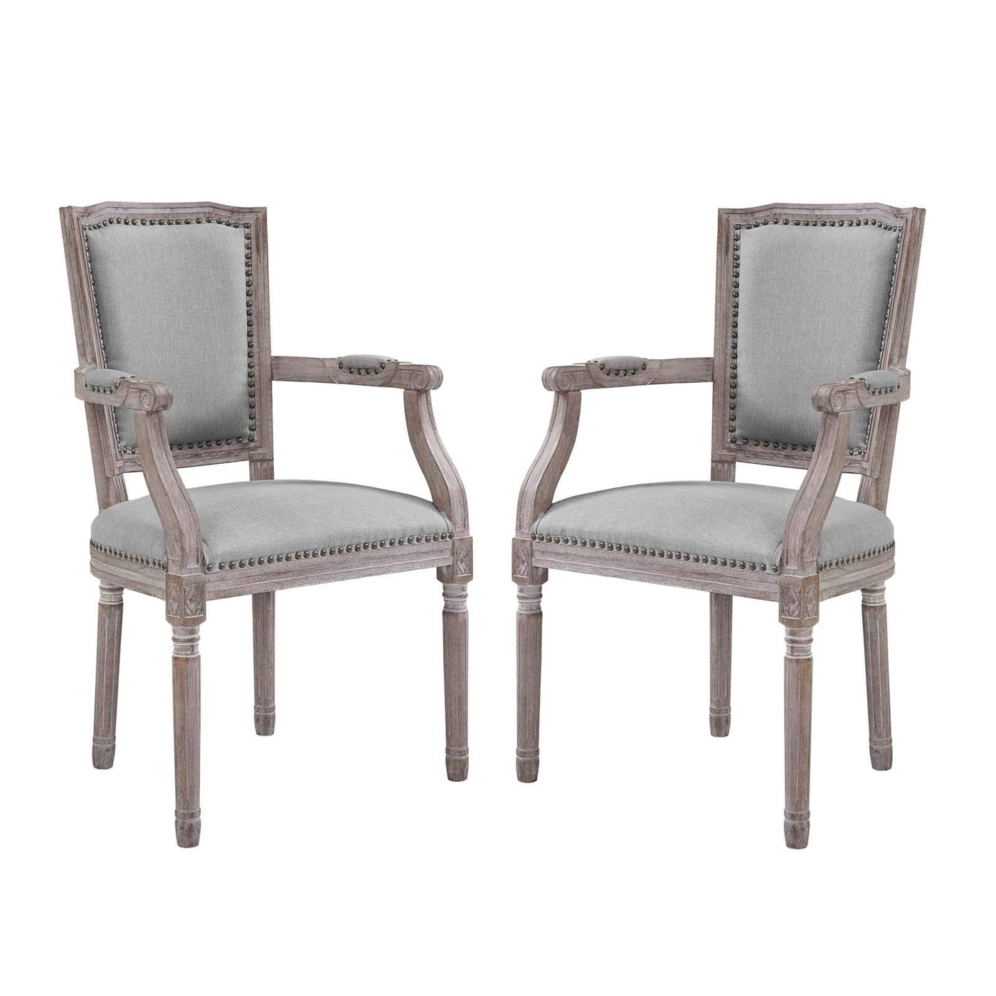 Modway Penchant French Vintage Upholstered Fabric Two Armchairs With Nailhead Trim In Light Gray