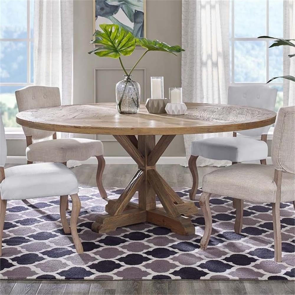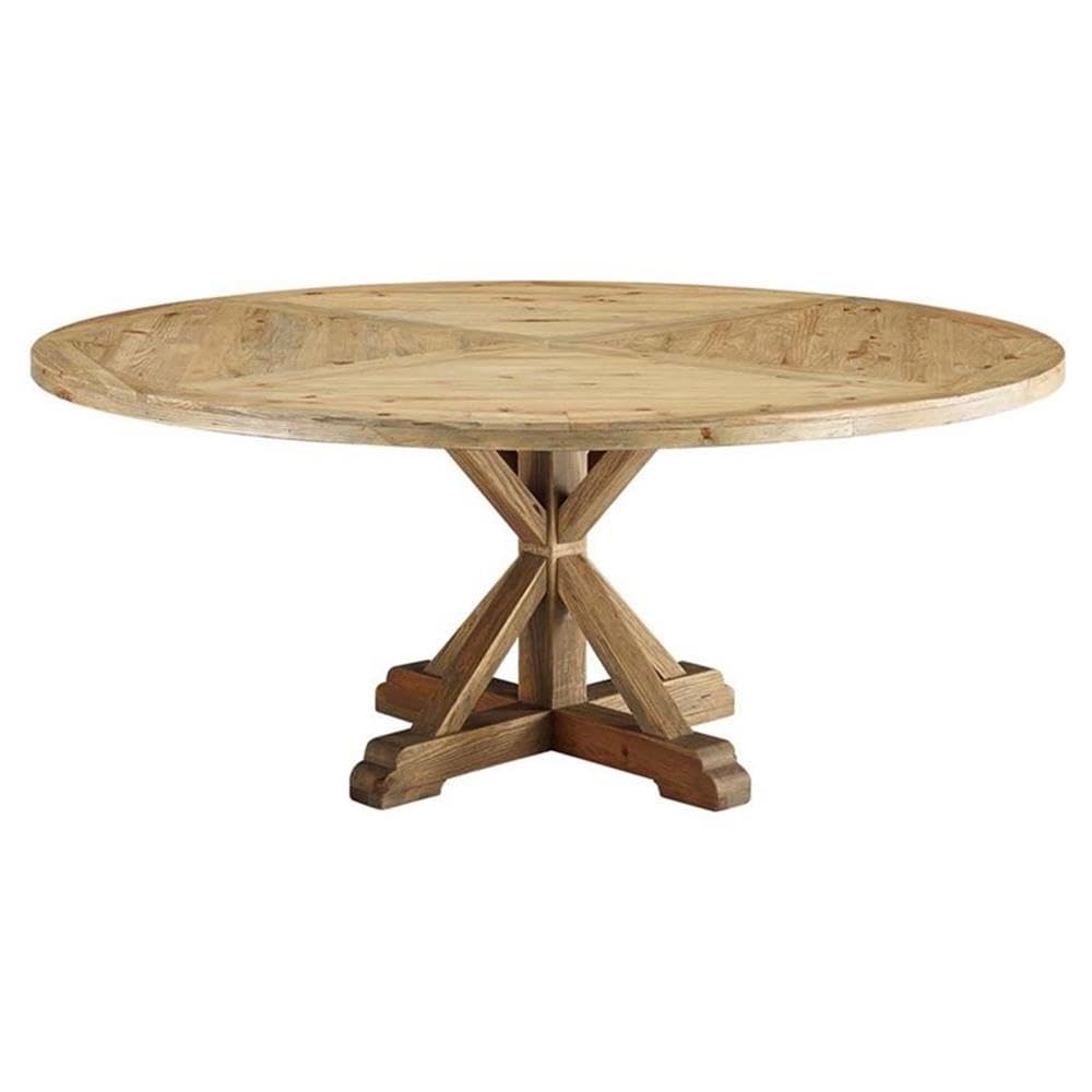Modway Stitch 71" Rustic Farmhouse Wood Round Kitchen And Dining Room Table, Brown