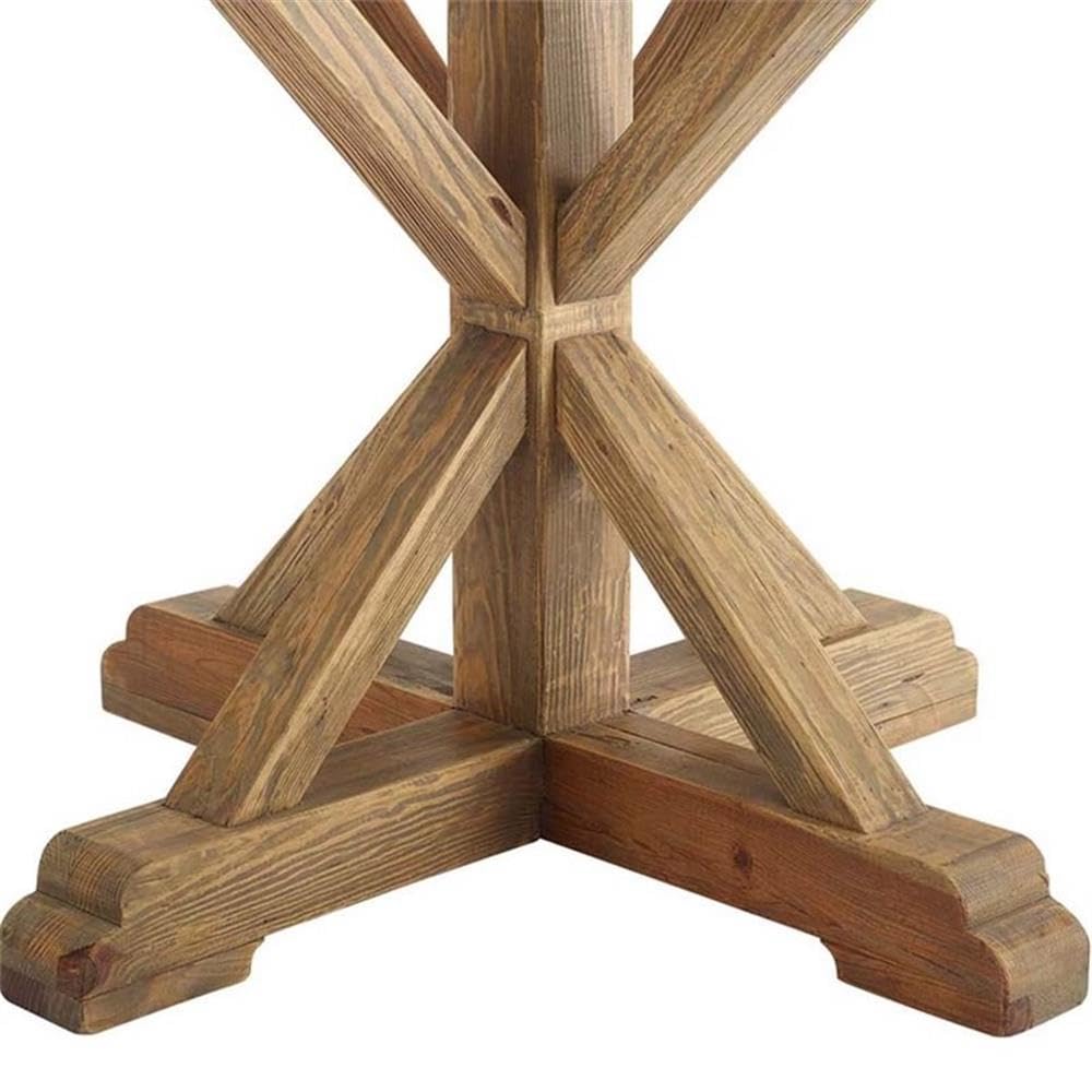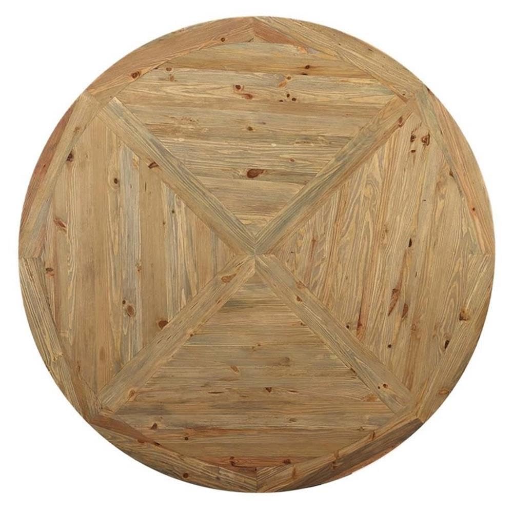 Gather Family And Friends For Good Food And Good Conversation With The Stitch 71” Rustic Farmhouse Round Dining Table. A Charming Addition To A Modern Farmhouse, Rustic, Industrial, Or Ranch Style Home, Stitch Kitchen Table Boasts A Rich Wood Grain Texture, Solid Pine Wood Construction, And Rests Atop A Pedestal Base Accented By Angular Braces. Complete With A 71-Inch Round Table Top For Extra Leg Room, Stitch Dining Table Accommodates Up To Six Guests, Making It The Perfect Choice For Everyday Dining Rooms Or Occasional Entertaining.