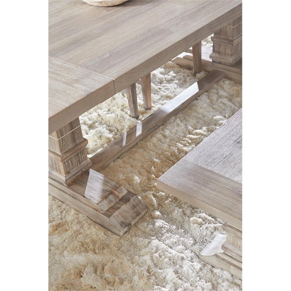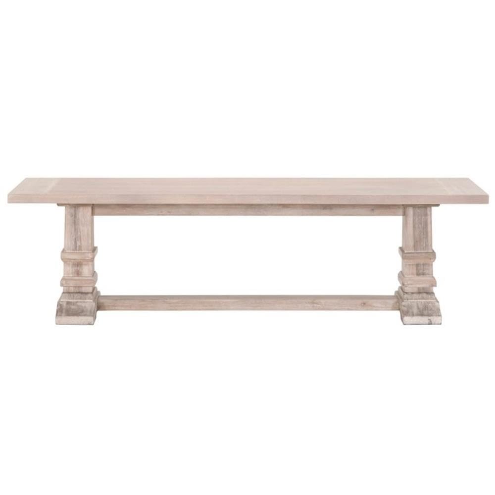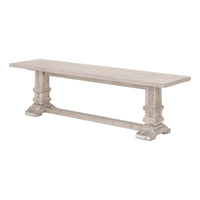 Cottage Chic Welcomes An Entry In The Form Of This Elegant Wood Dining Bench, A Great Alternative To Individual Dining Chairs. Crafted Of Acacia And Wood Products, Its Distressed Natural Gray Finish Offers A Light, Versatile Hue To Work With A Number Of Palettes. Ornate Woodwork And A Stretcher Bar Add To The Balance And Symmetry Of This Exceptional Bench.