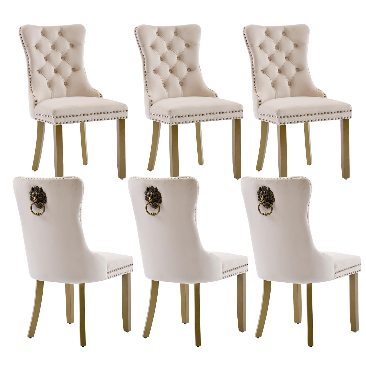 Velvet Dining Chairs Set Of 6, Modern Tufted Dining Room Chair, Upholstered Dining Chairs With Lion Head Pulls Ring And Golden S