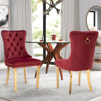 Vicbarley Velvet Dining Chair Set Of 2 Upholstered Tufted Dining Room Chair With Nailhead Trim And Stainless Steel Golden Plated Legs For Kitchen, Restaurant, Winered
