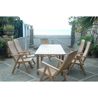 When comfort is your priority, Katana reclining armbands are the ideal choice. Five positions allow these chairs to adjust to your ideal comfort level; two positions for dining and the other three for reclining, either for conversation or even for a nap. Place this game next to your pool, under a shady tree or anywhere where relaxation is key. This dining set includes six gorgeous Katana reclining tables and our 95-inch rectangular dining table. The cushion is optional and is made to order. Dimensions: Armchair: 25 inches wide 19 inches deep 42 inches high. Seat Height: 16 inches. Table: 59 inches/95 inches long 36 inches wide 31 inches high
