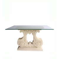 There is simply nothing like it. The Elysees 47" Rectangular Dining Table will surely be the conversational topic of your dining room. Our artisan combined the detailed scroll work with a solid base for a dramatic, yet balanced piece that can be combined elegantly with any type of chairs. Constructed of limestone to last for generations