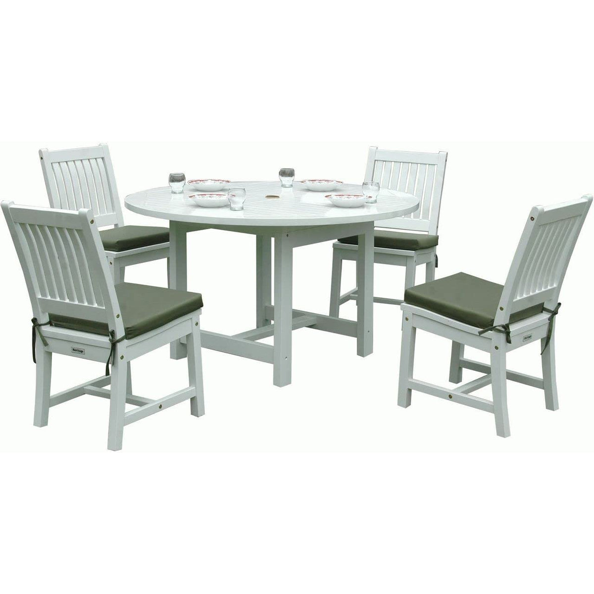 Our Regency Collection Set bring joy and comfort to your patio. The uniqueness of each item will make your garden or patio unforgettable to your guests. It comes with 1 52" Regency round dining table and 4 Regency dining chairs.