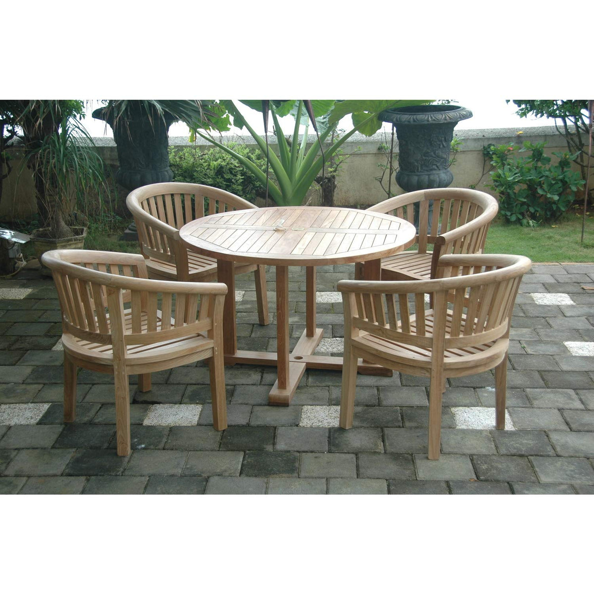 This traditional-styleTosca dining set has an ideal design for dining and relaxing in your garden. These large and gorgeous Curve Armchair Extra Thick Wood will be the jewel of your garden. The solid construction and beautiful, traditional design will surely provide your family with many years of outdoor recreation. This intimate dining set comes with the 47" Tosca Round Table and four Curve Armchair Extra Thick Wood.