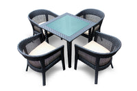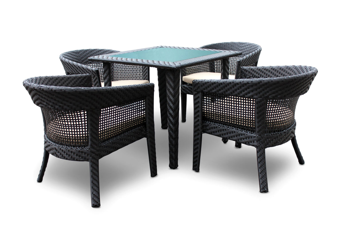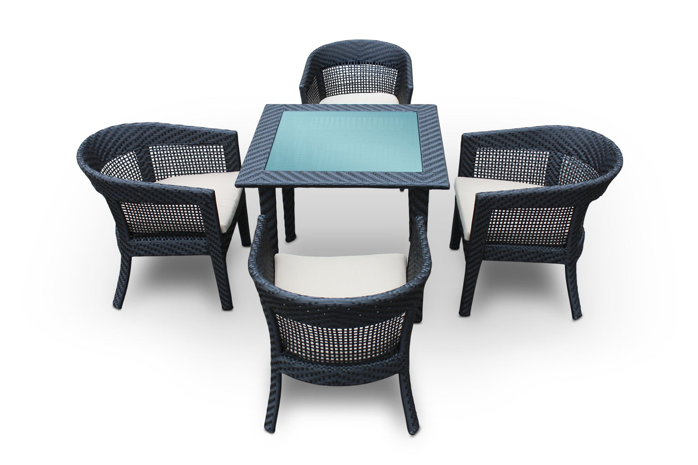 The Crius 5 Piece Dining Set By Luxus B, Features 4 Chairs With Seat Cushions And A Dining Table With Tempered Clear Glass. Aluminum Frame With All Weather Wicker.The Crius 5 Piece Dining Set Offers High Quality Contemporary Design Through Clean Lines. The Crius 5 Piece Dining Set Comes Structured In Aluminum, Covered With Outdoor Weather Resistant Rattan Woven To Perfection. The Rattan Is Similar To Natural Fiber But Totally Resistant To Outdoors.