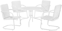Crosley Furniture Bates 5-Piece Outdoor Dining Set For 4, Retro Metal Round Patio Table And Chairs For Deck, White Gloss