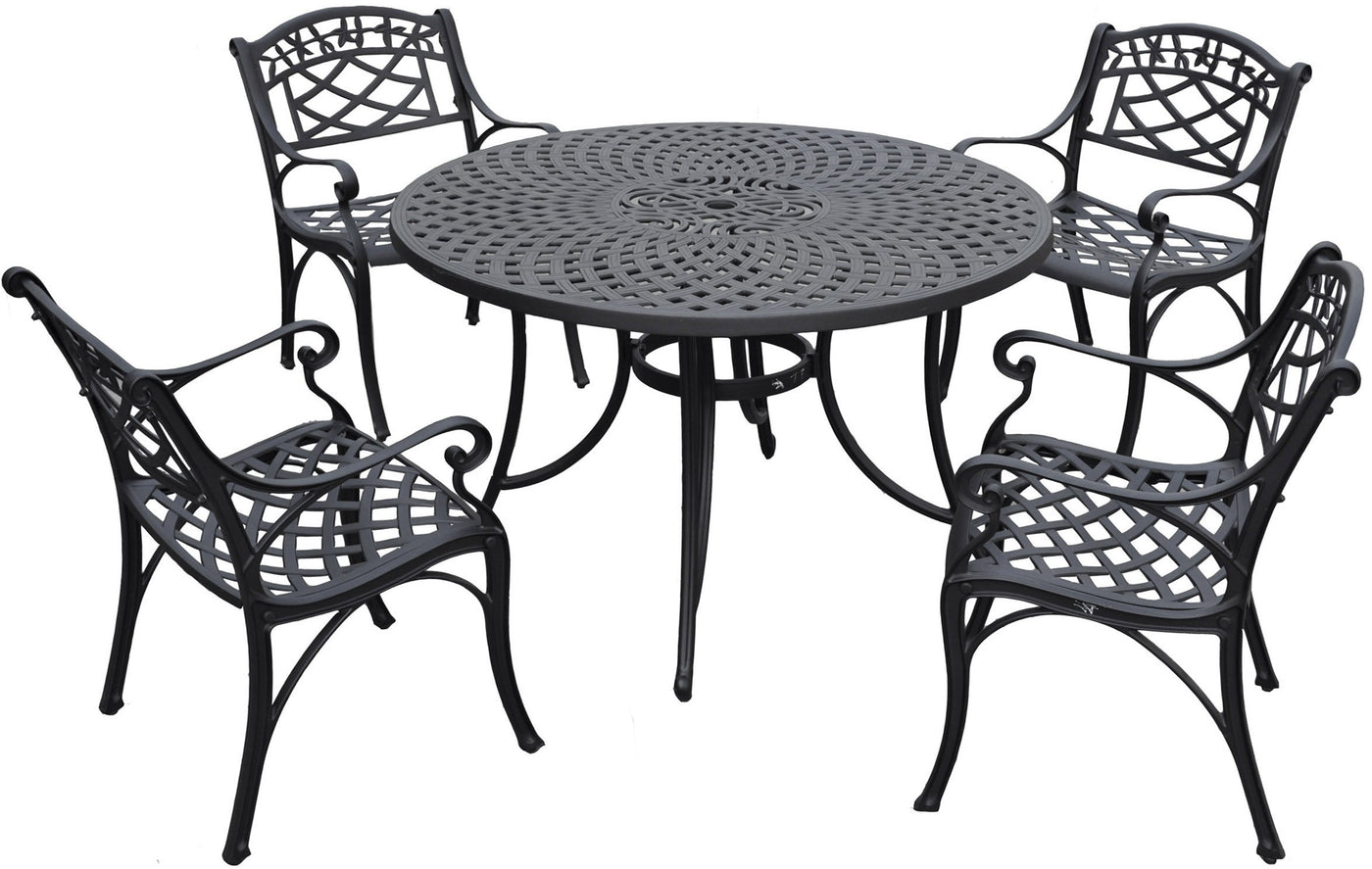 Crosley Furniture Sedona 5-Piece Outdoor Dining Set For 4, 46" Cast Aluminum Round Patio Table And Chairs, Black