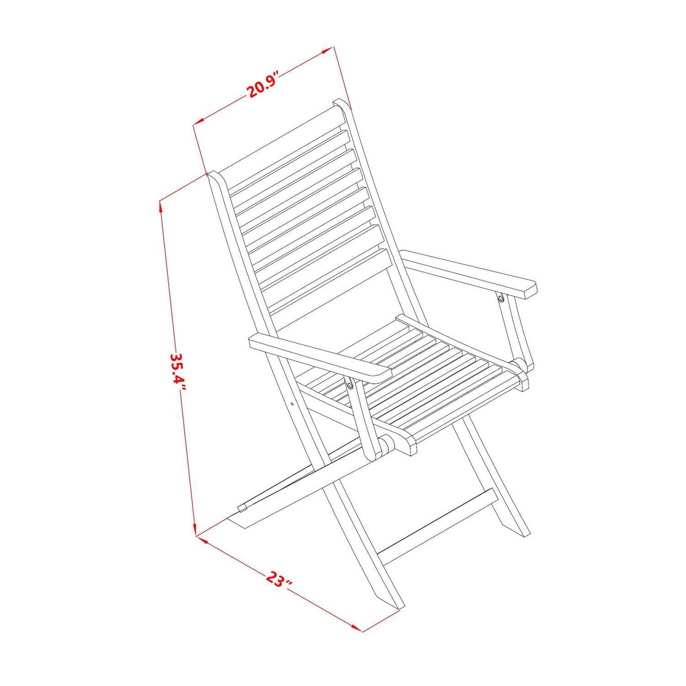 EAST WEST FURNITURE - AEBS7CANA - 7 PIECE OUTSIDE DINING SETOur outdoor dining set consists of a beautiful wooden bistro table and 6 chairs, offering comfortable seating for up to six people. Made from sturdy Acacia Wood, this 7-piece set is designed to last. The unique rectangular-shaped table features folding chairs with armrests that are perfect for outdoor use. The chairs' X-style legs provide stability, while the convenient folding function allows for easy storage when not in use. Whether you want to use it on your balcony or in your backyard, this bistro set is a stylish and practical addition to your outdoor space. The set is also easy to clean with a damp cloth, and comes with all the necessary tools and instructions for quick and easy assembly.PRODUCT FEATURES: Finish: Natural Oil Material: Acacia Hardwood Outdoor Table Shape: Rectangular Outdoor Folding Chairs Back Style: Ladder Back Table Dimensions: Length: 60; Width: 36; Height: 30. Chairs Dimensions: Length: 23; Width: 20.90; Height: 35.40. Chair Weight Capacity: 300 LbsPackage Includes: A Wood Kitchen Table with 6 Folding Patio Chairs