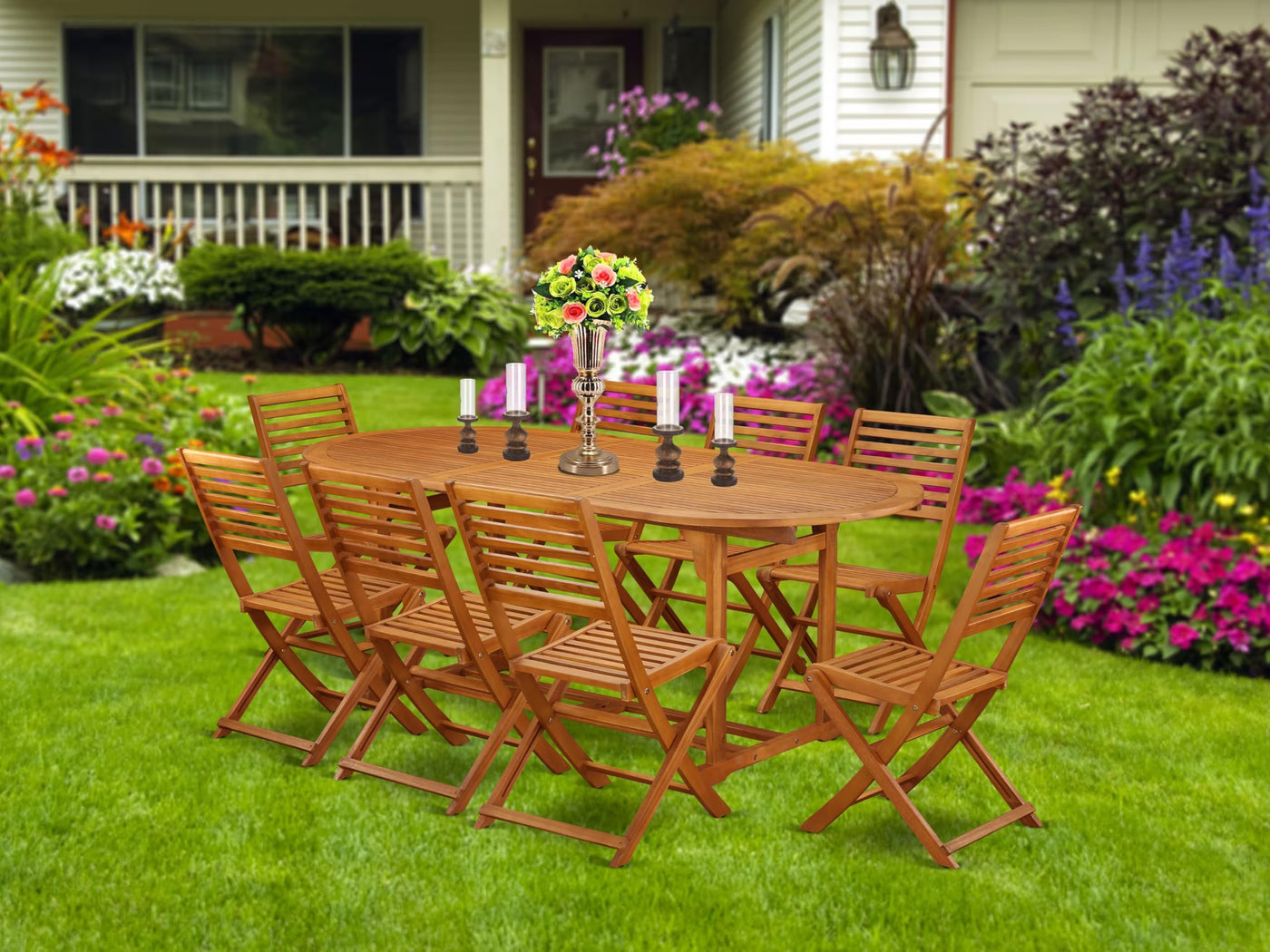 East West Furniture Bsbs9Cwna Beasley 9 Piece Patio Garden Set Includes An Oval Outdoor Acacia Wood Dining Table And 8 Folding Side Chairs, 36X78 Inch