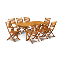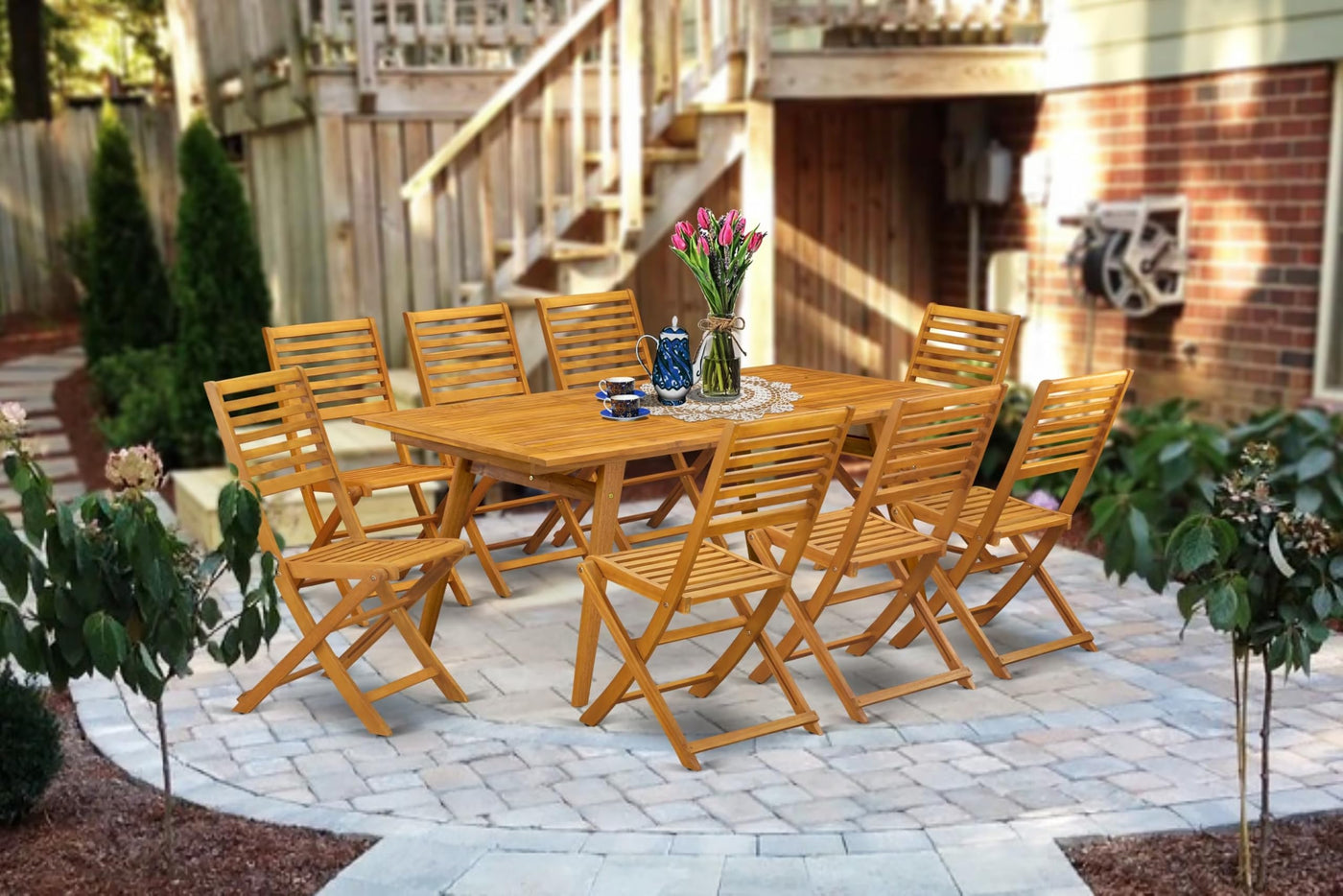 East West Furniture Debs9Cwna 9 Piece Outdoor Patio Dining Sets Includes A Rectangle Acacia Wood Table And 8 Folding Side Chairs, 40X72 Inch, Natural Oil