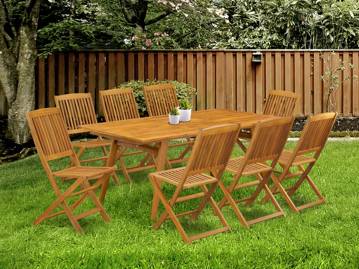 East West Furniture Decm9Cwna 9 Piece Patio Dining Set Includes A Rectangle Outdoor Acacia Wood Table And 8 Folding Side Chairs, 40X72 Inch, Natural Oil