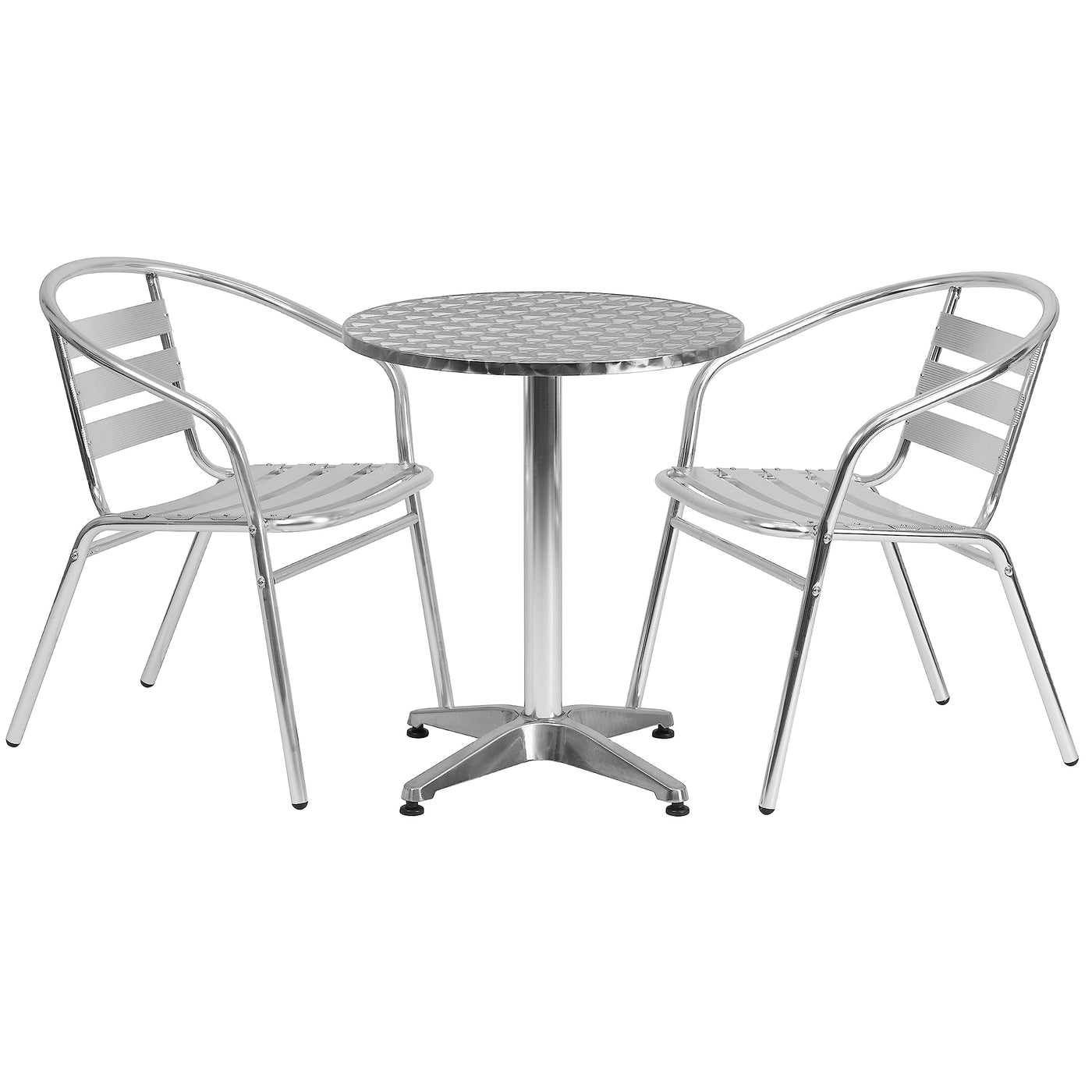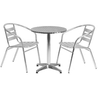 Flash Furniture 23.5'' Round Aluminum Indoor-Outdoor Table Set with 2 Slat Back Chairs