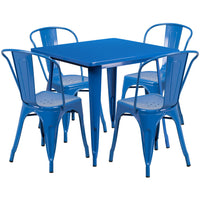 Flash Furniture Commercial Grade 31.5" Square Blue Metal Indoor-Outdoor Table Set with 4 Stack Chairs