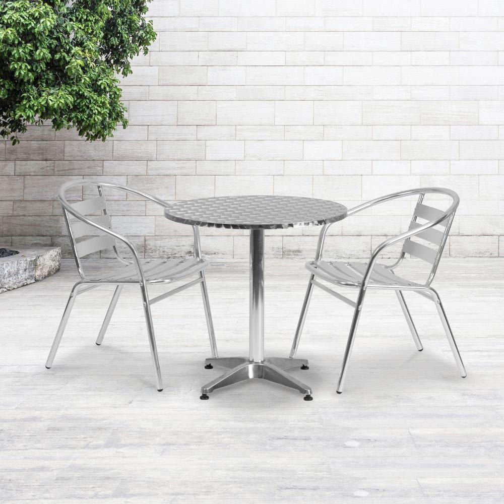 Flash Furniture Lila 27.5'' Round Aluminum Indoor-Outdoor Table Set with 2 Slat Back Chairs