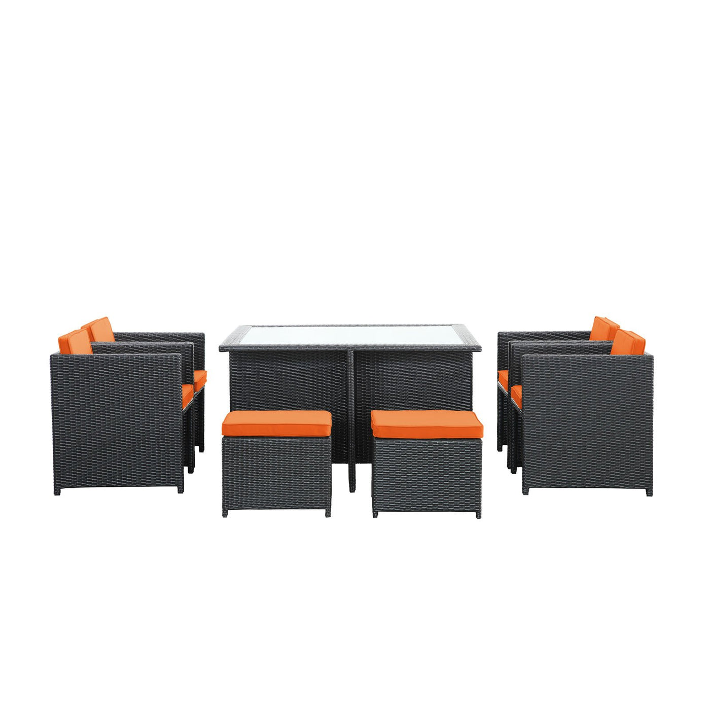Modway Inverse Wicker Rattan 9-Piece Outdoor Patio Dining Furniture Set In Espresso Orange