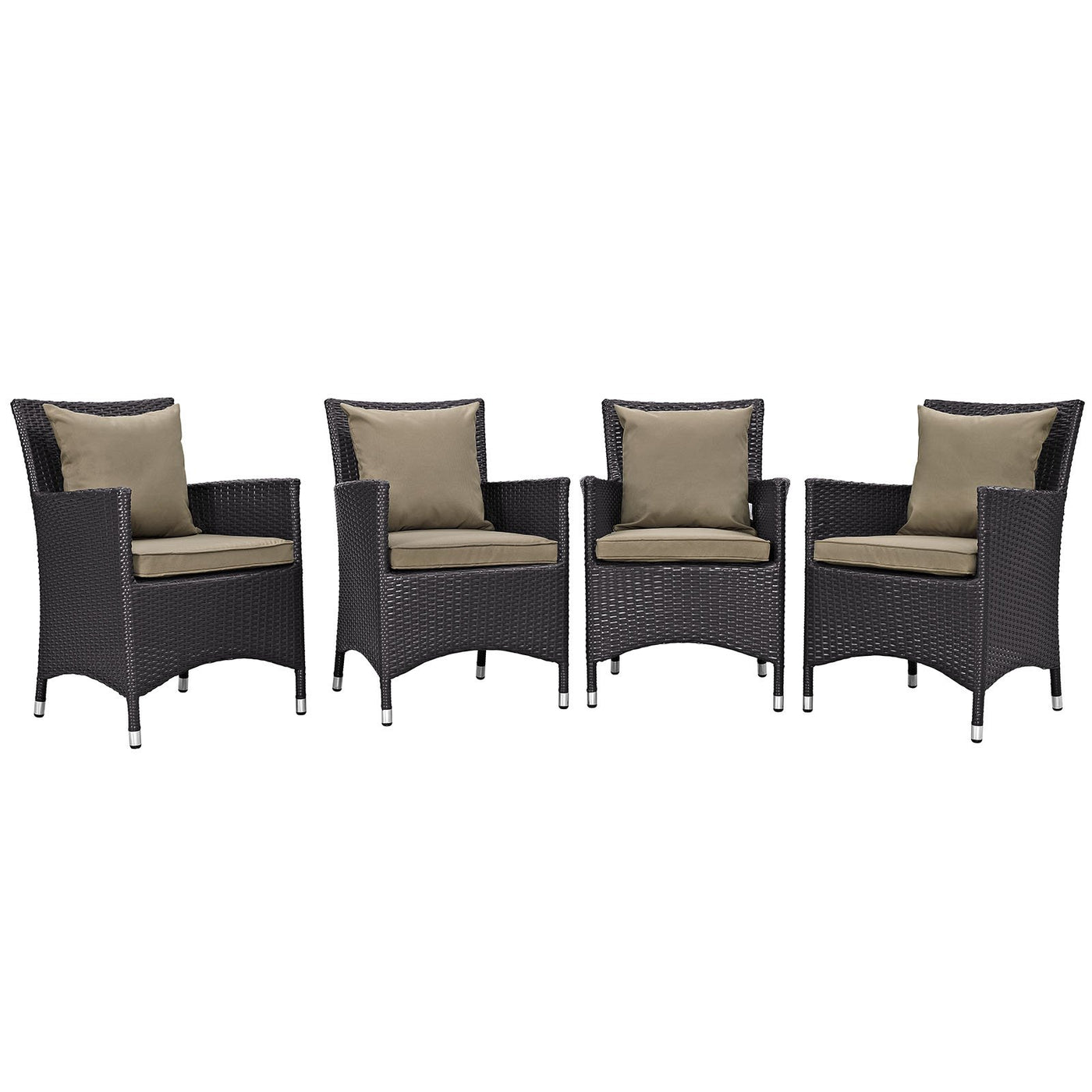Modway P 4 Piece Set Convene Wicker Rattan Outdoor Patio, Four Dining Armchairs, Mocha