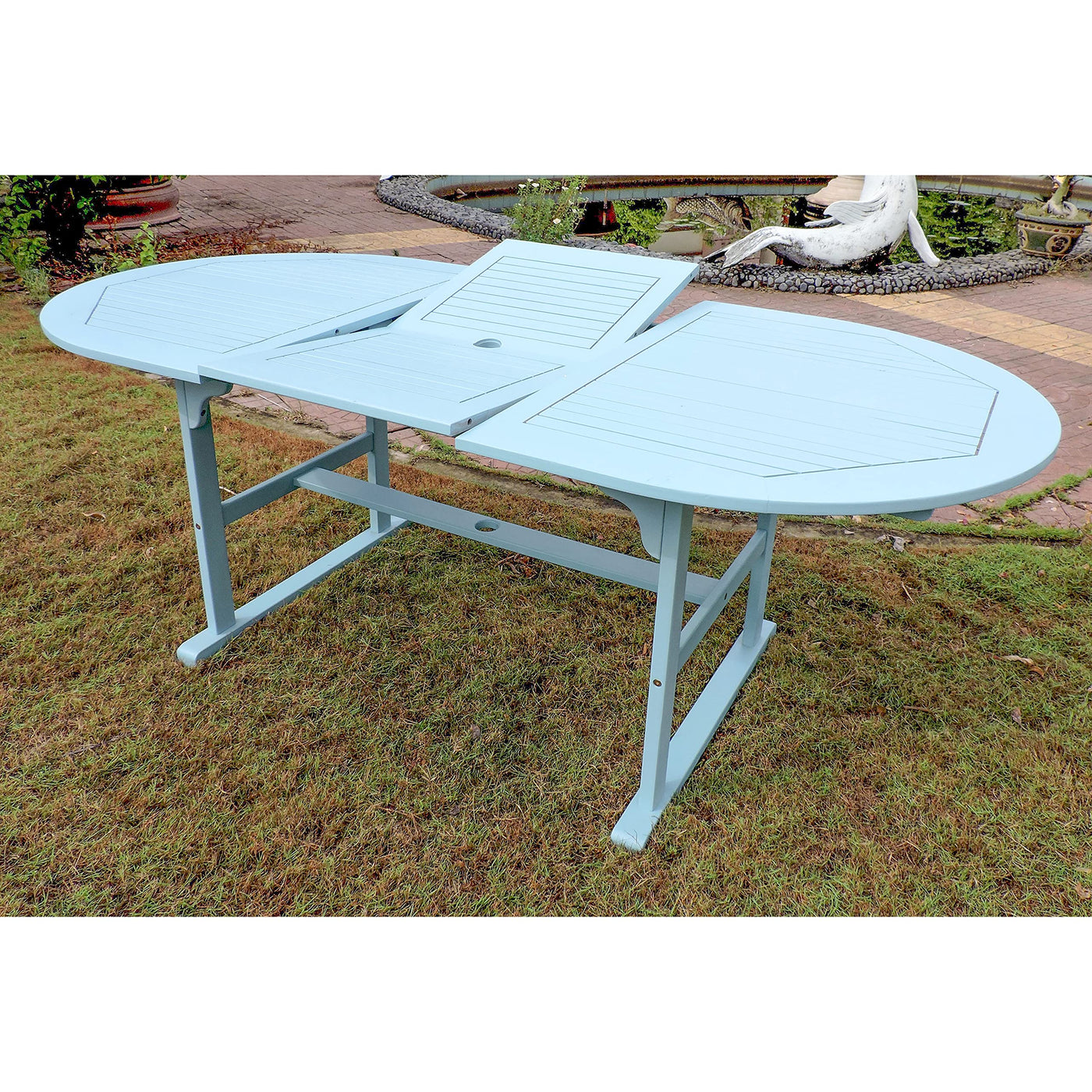 Royal Fiji 59-inch / 79-inch Acacia Oval Extendable Dining Table w/Fold Out Leaf - Sky Blue
