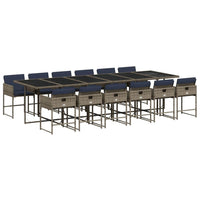 vidaXL 13 Piece Patio Dining Set - PE Rattan, Cushions, Foldable Chairs, Glass Tabletop - Gray, Navy Blue - Outdoor Garden, Backyard, Patio Furniture