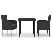 vidaXL 3-Piece Black Patio Dining Set with PE Rattan Chairs and Glass Tabletop, Outdoor Garden Furniture with Removable Seat Cushions