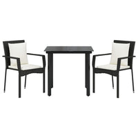 vidaXL 3-Piece Black Poly Rattan Patio Dining Set with Cream Cushions - Weather-Resistant Outdoor Seating with Tempered Glass Tabletop and Sturdy Steel Frame – Modular Lounge Set for Garden, Back...